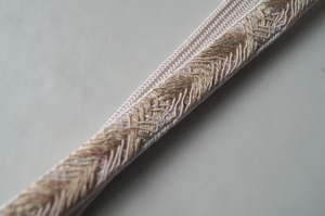 淡い灰梅色をベースに、コッパーのような金糸、