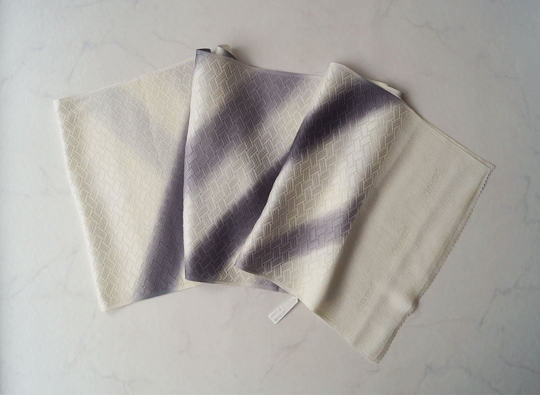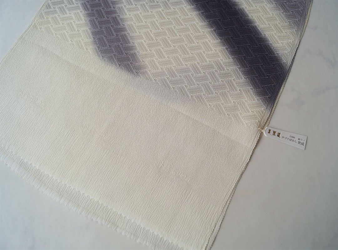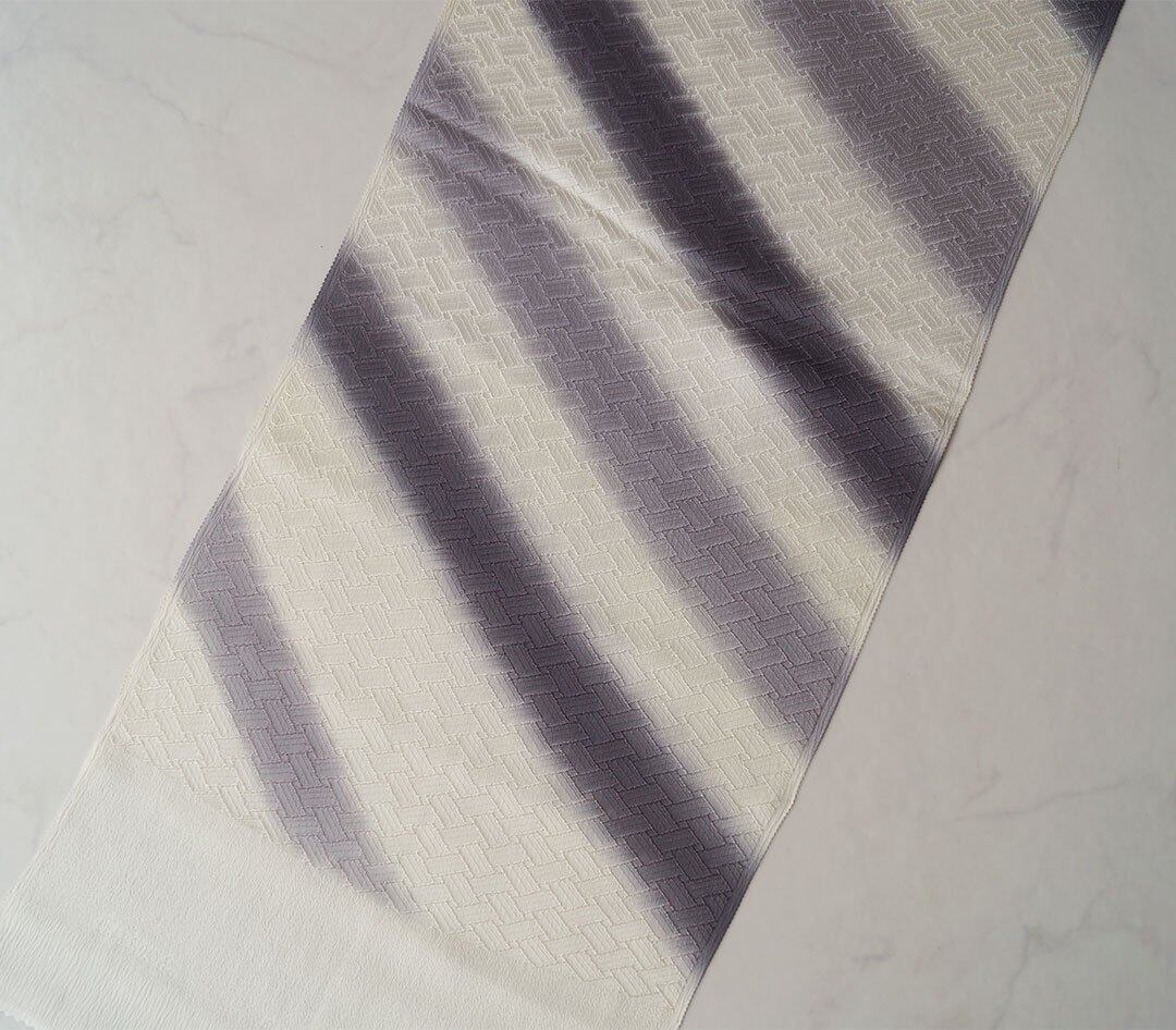オフホワイト色に二色の斜めの暈し染めを施したお品です。