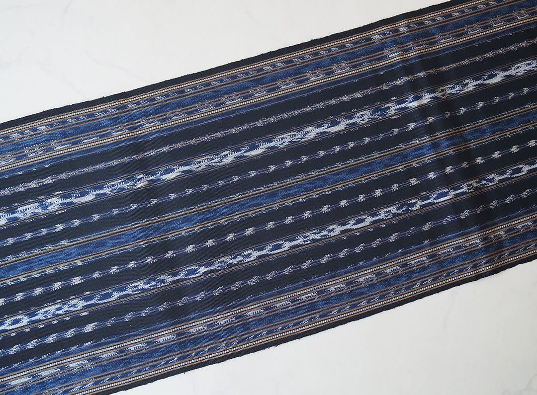 【なごや帯】黒×紺 イカット織 なごや帯