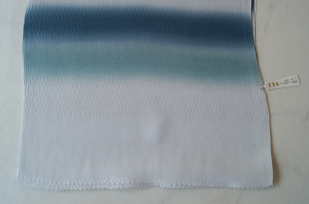 【帯揚げ】卯の花色×白群×花浅葱 うずら縮緬 三色横段暈し 帯揚げ 250903⑬