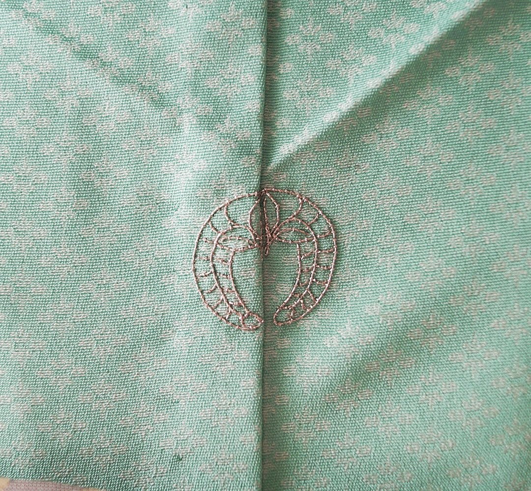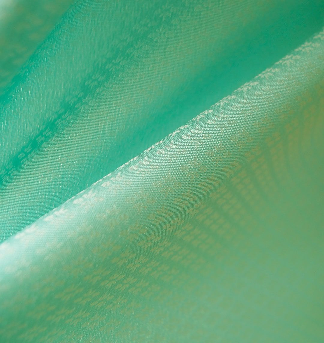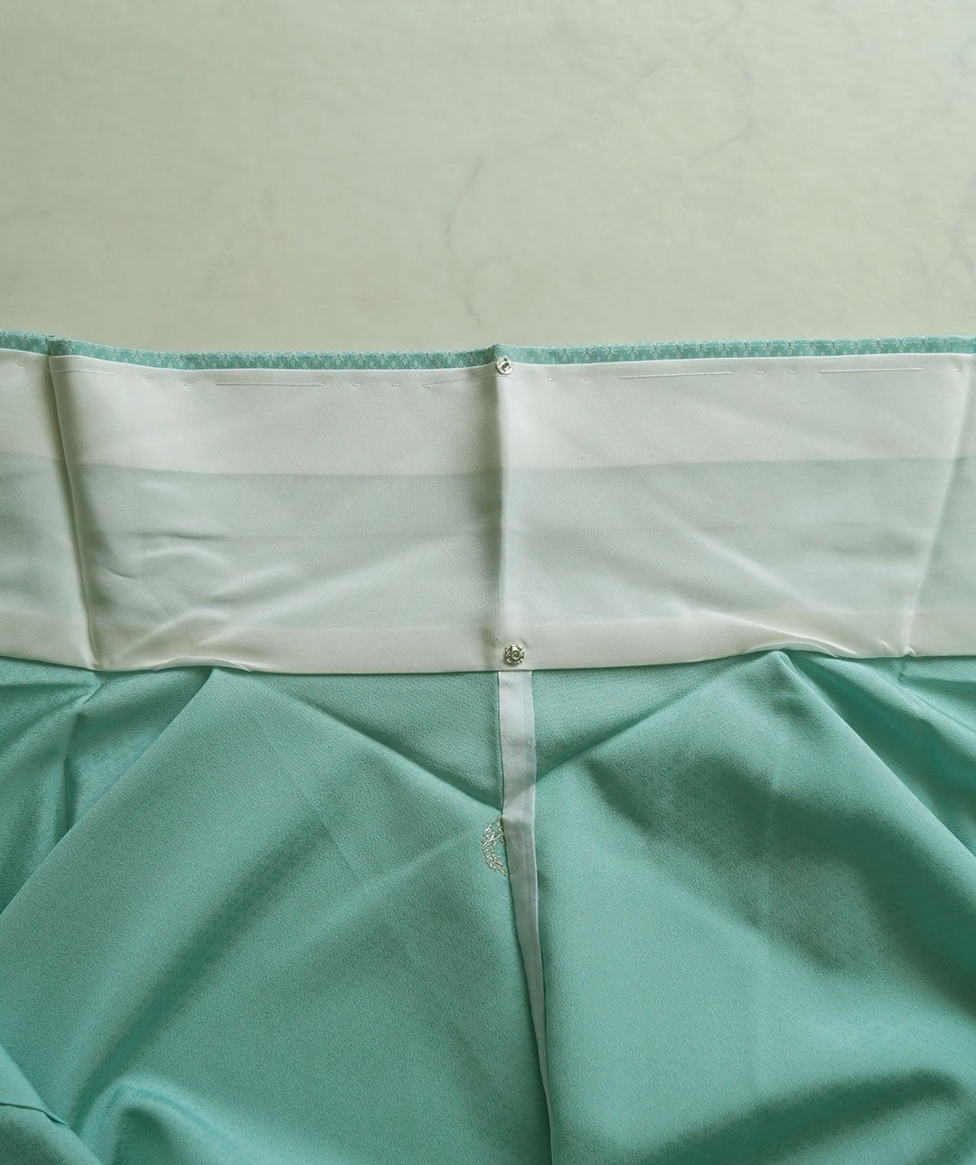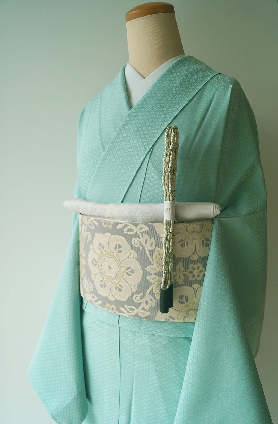 【単衣】 ゆとりサイズ ターコイズ色 五百機小紋 縫いの一つ紋