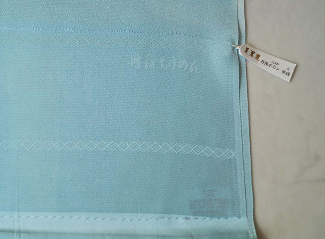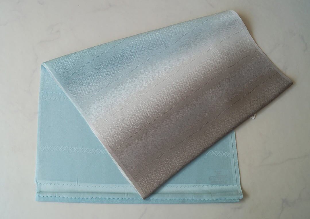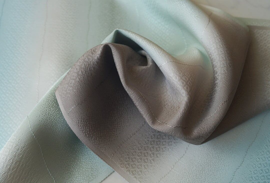 【帯揚げ】白群×錆青磁×煤色 横段地紋 帯揚げ 250903④