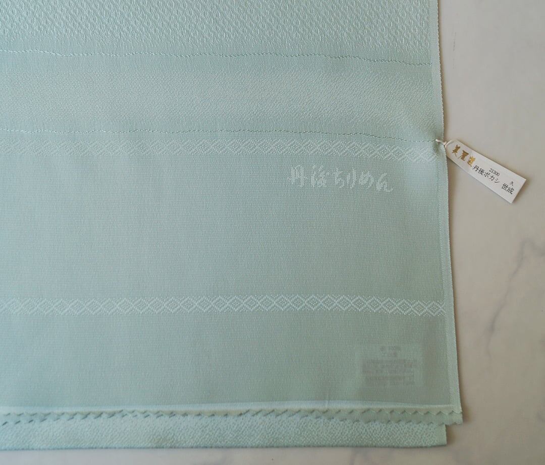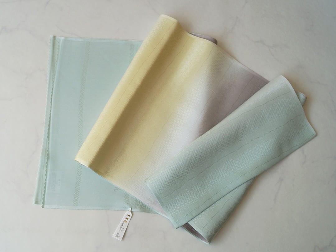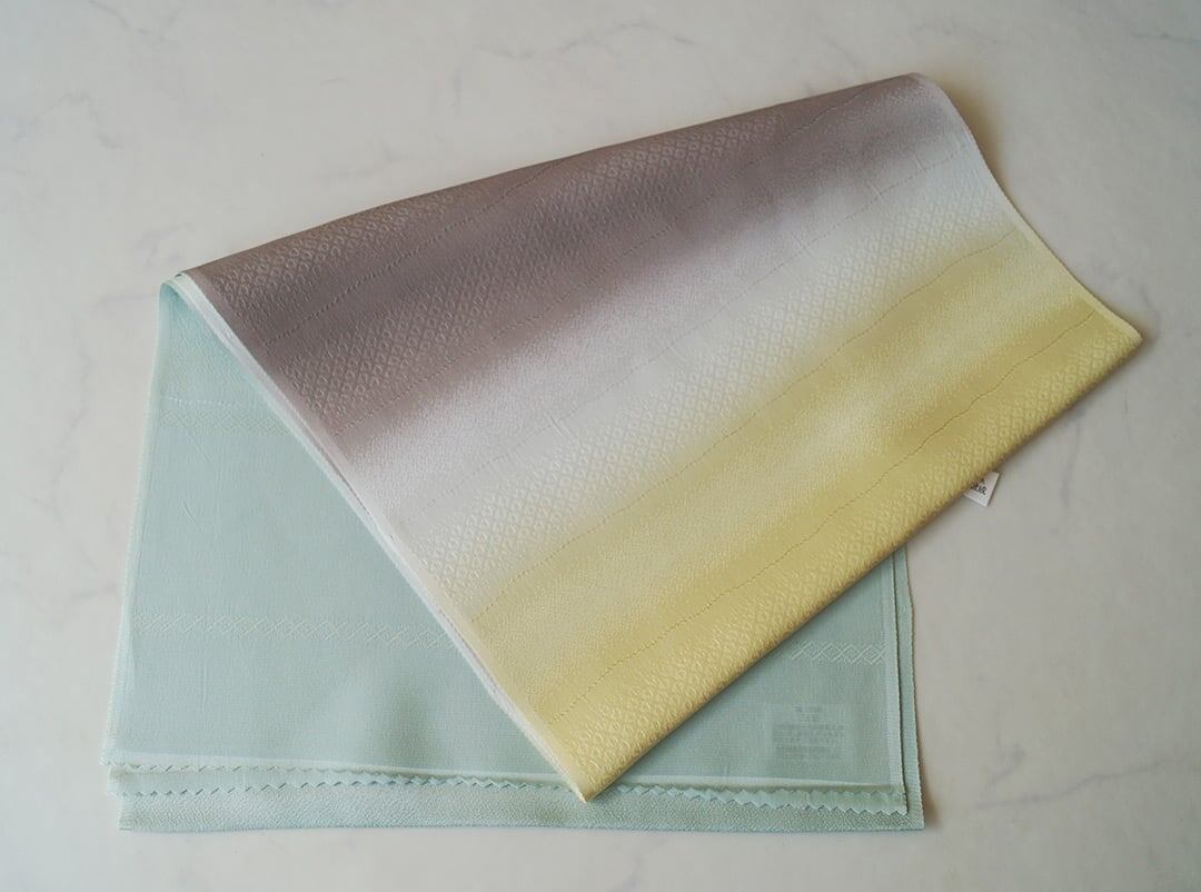 【帯揚げ】薄青緑×煤色×薄黄 横段地紋 帯揚げ 250903⑤
