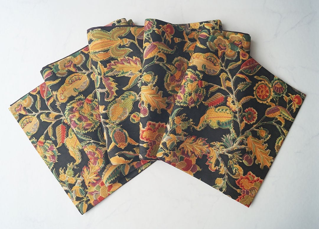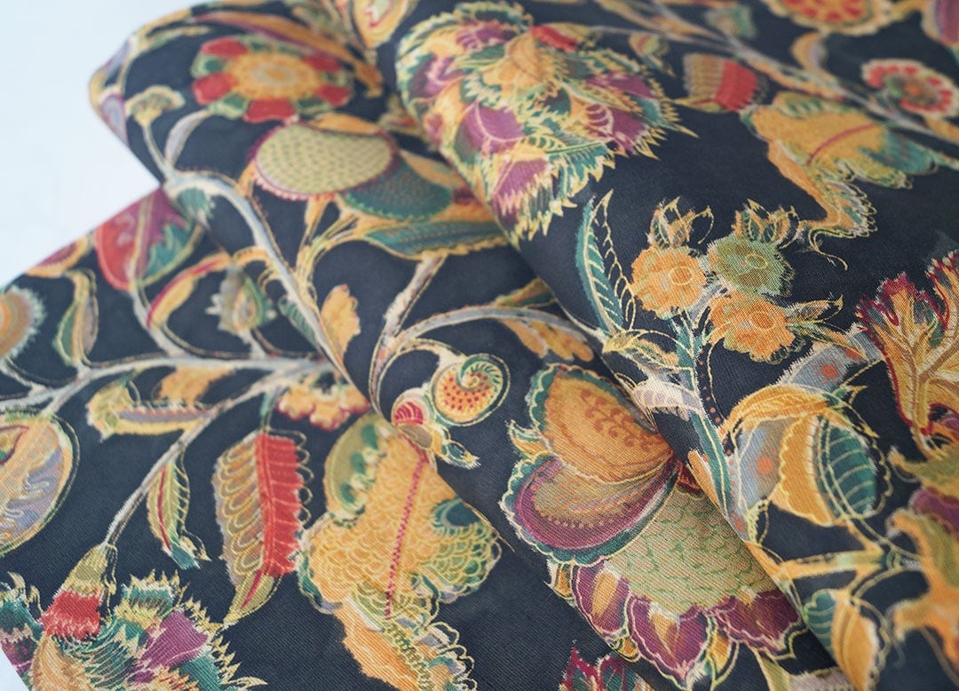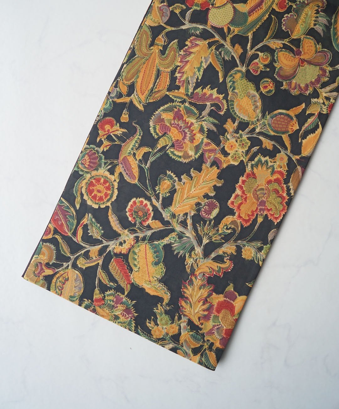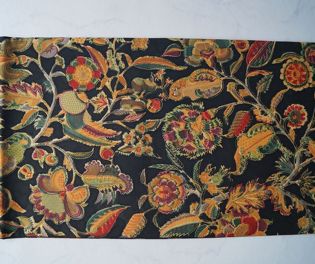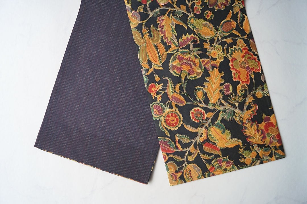 お柄は黒色地にエキゾチックな風合いの更紗。