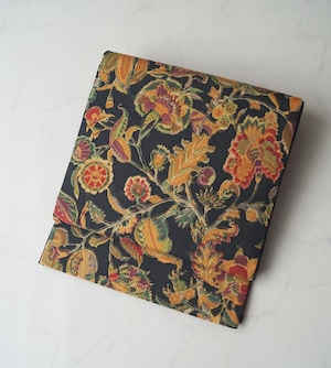 【ふくろ帯】黒色地 更紗文 白山工房牛首紬 ふくろ帯