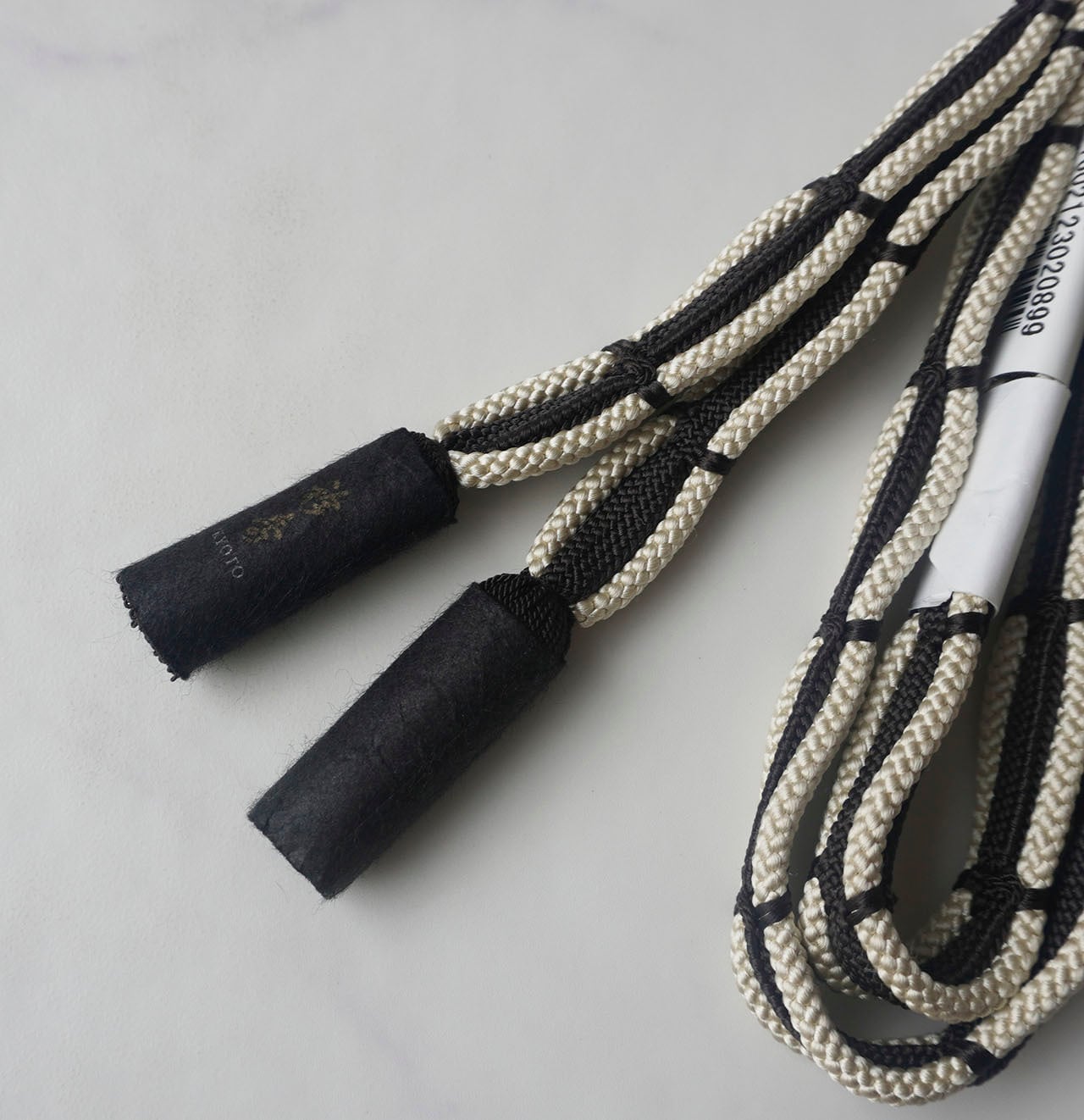 【衿秀・帯締め】 赤墨 呉竹組生成りレース帯締め 撚り房 251013④