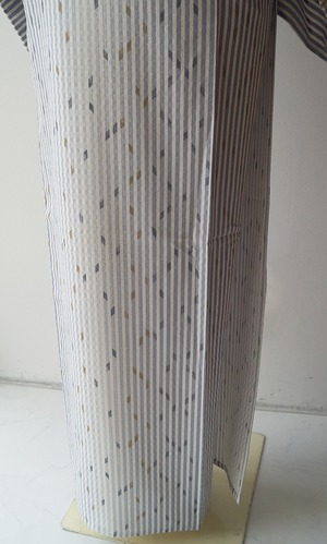 縞に隠れ斜め格子柄の単衣小紋です。