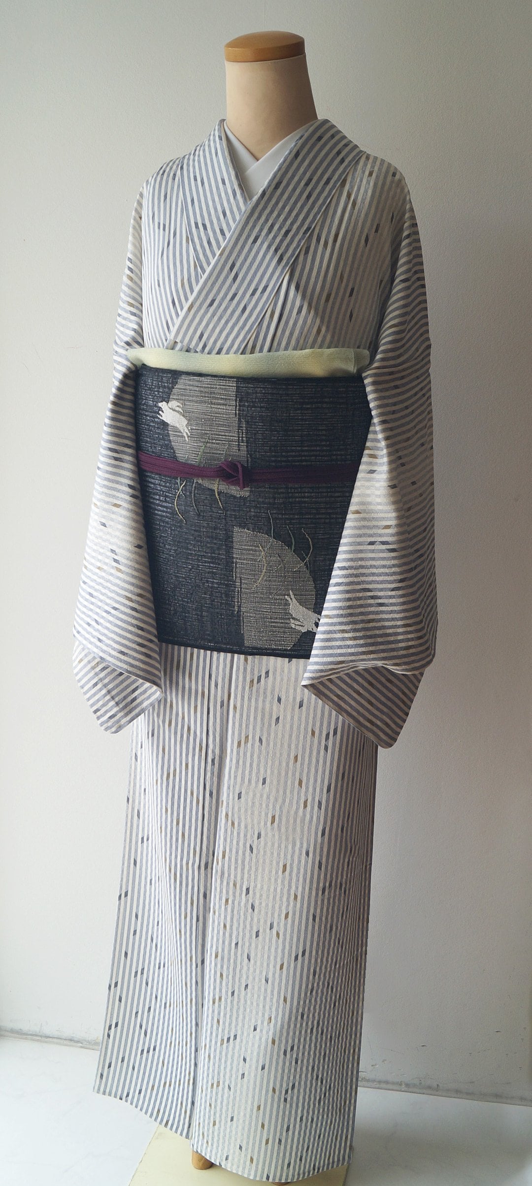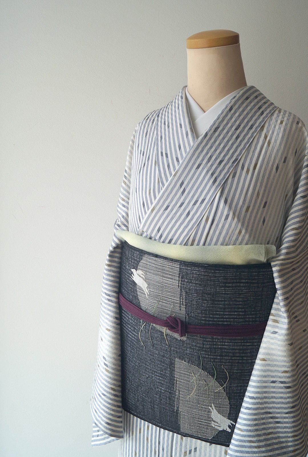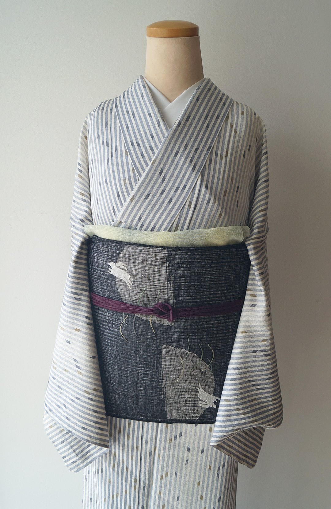 お色は生成り色×藤鼠色の縞、