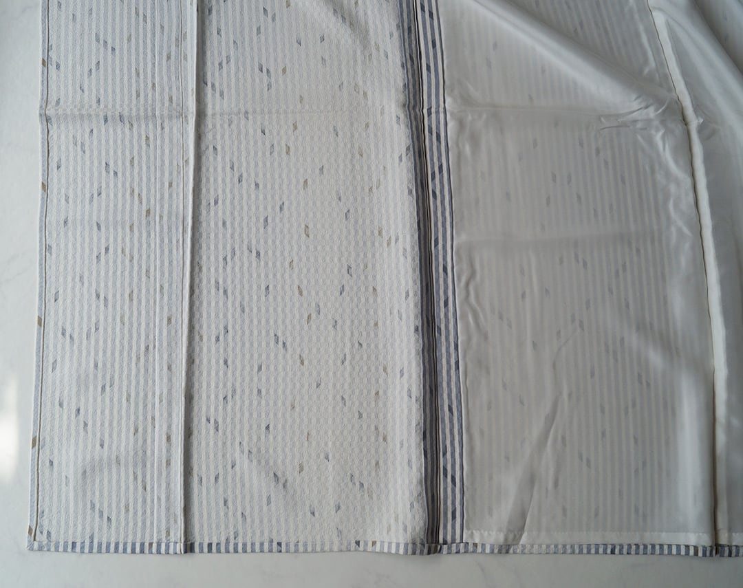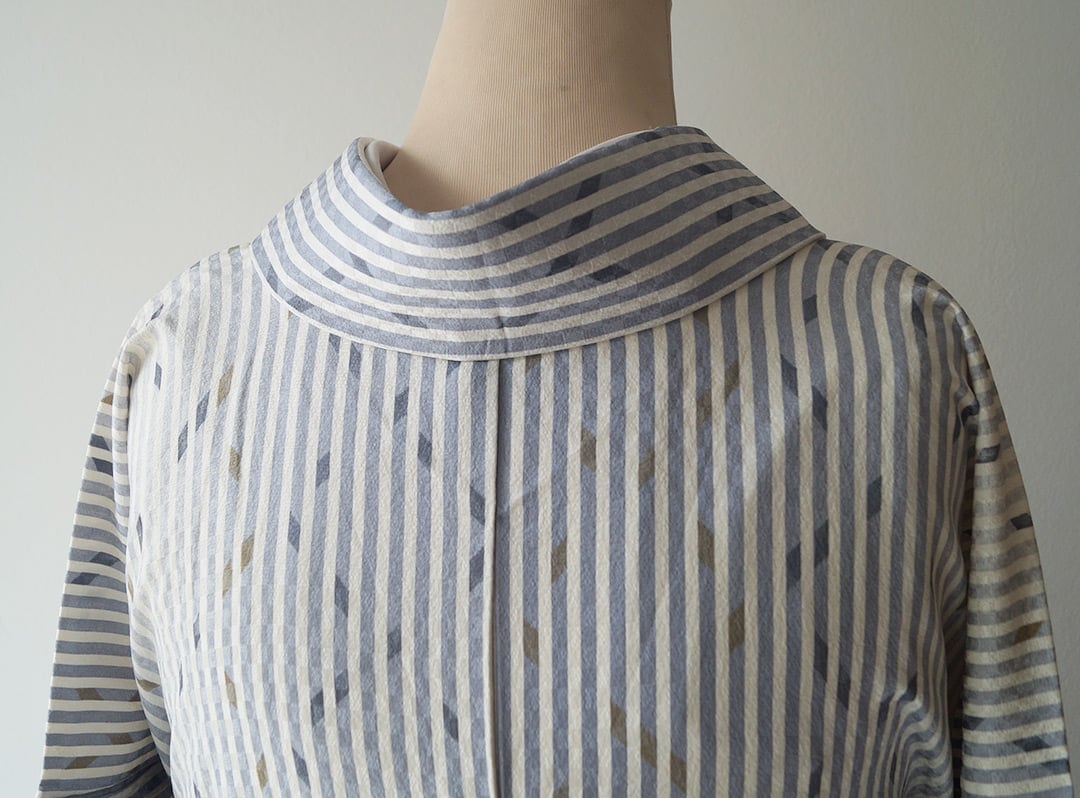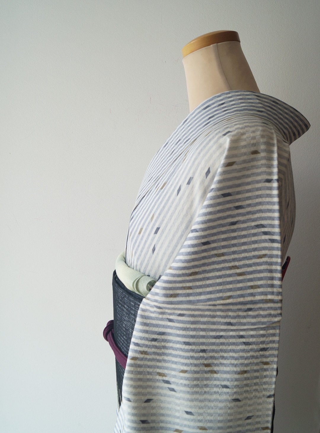 お色は生成り色×藤鼠色の縞、