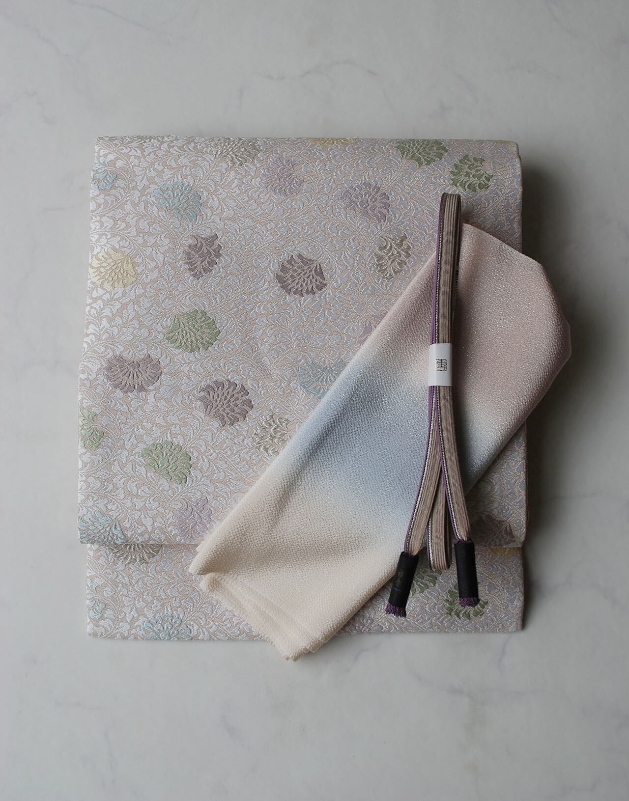 【和小物さくら・帯揚げ】灰桜×白菫色×象牙色 三色暈かし帯揚げ No.250715⑪