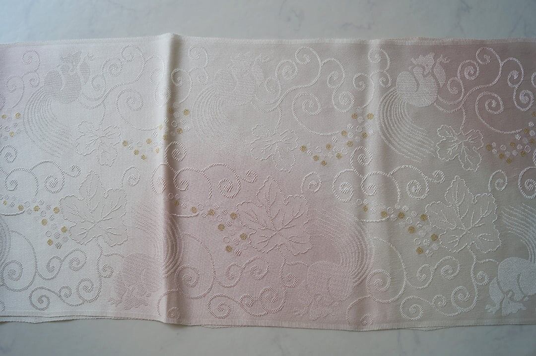 【和小物さくら・帯揚げ】縫取ぶどう唐草ぼかし・二色帯揚げ 薄桜色・白色 No.250715⑬