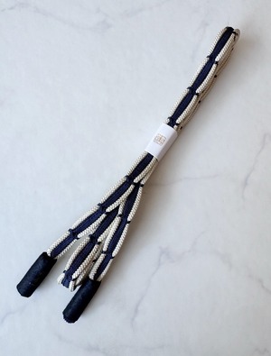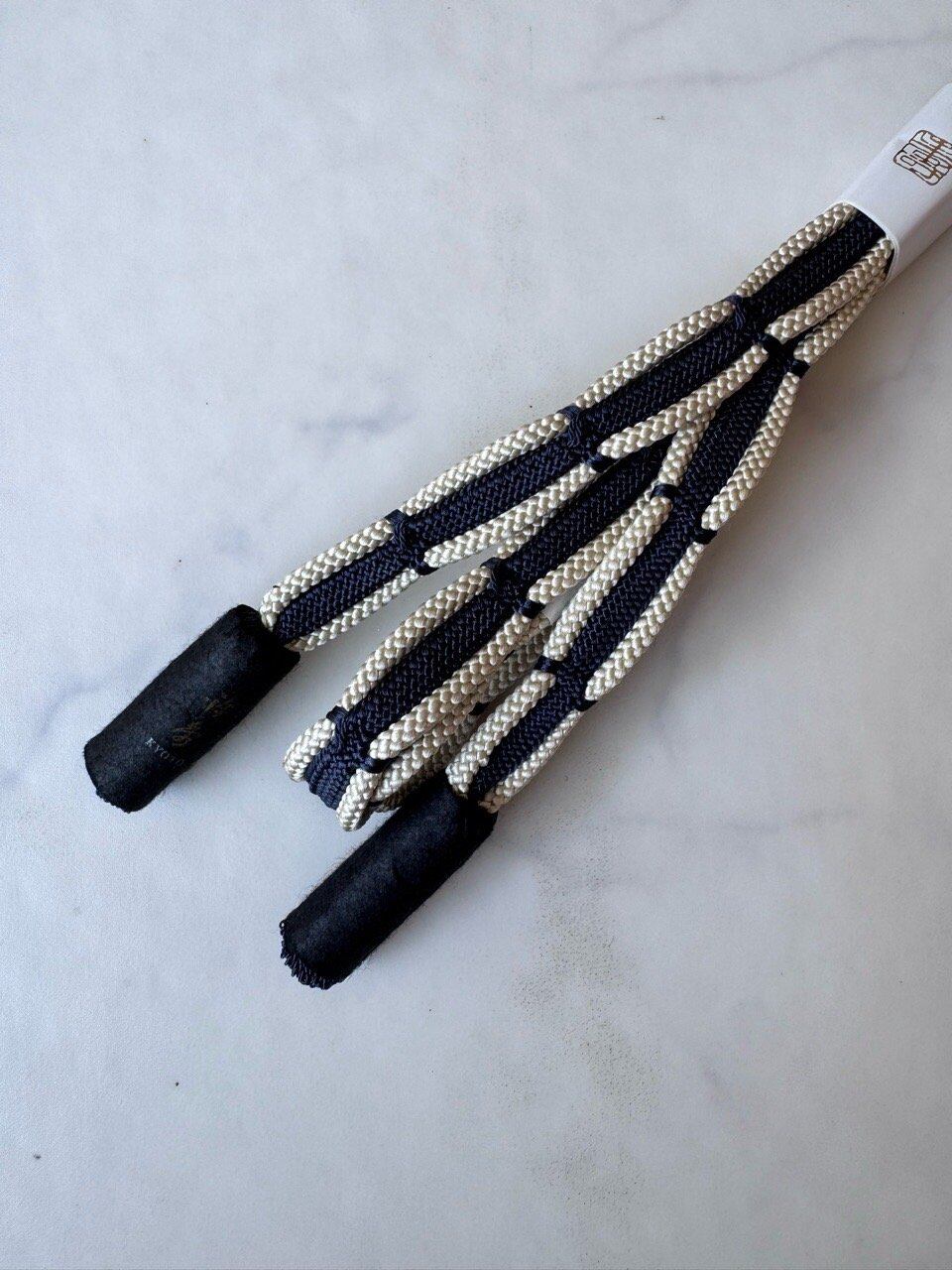 【衿秀・帯締め】 青褐色 呉竹組生成りレース帯締め 撚り房 250729⑥