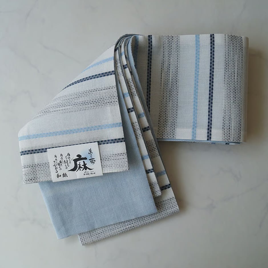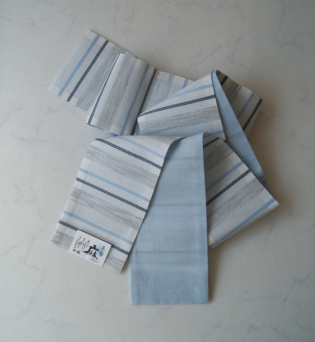 リバーシブル仕様の麻の半幅帯、
