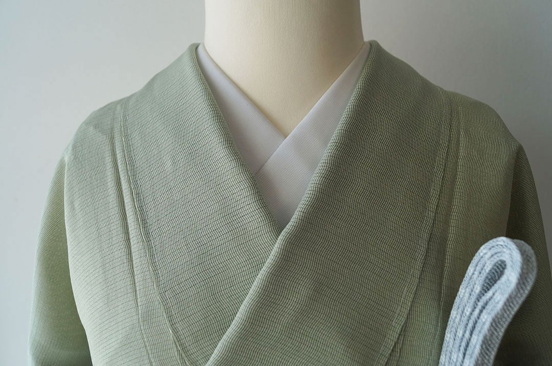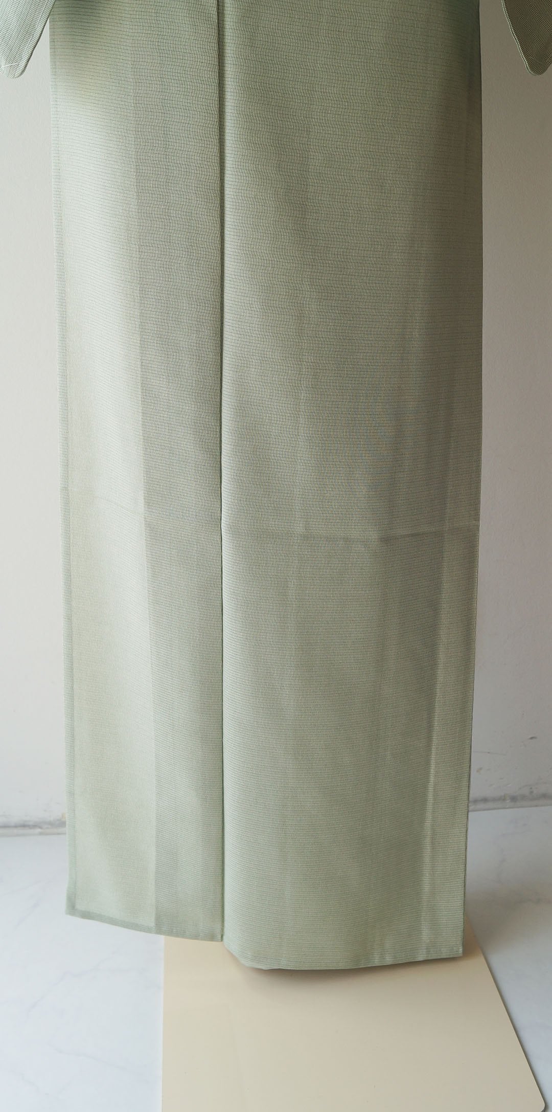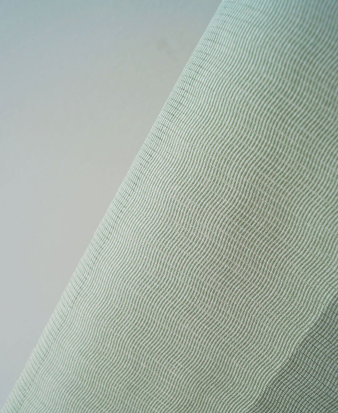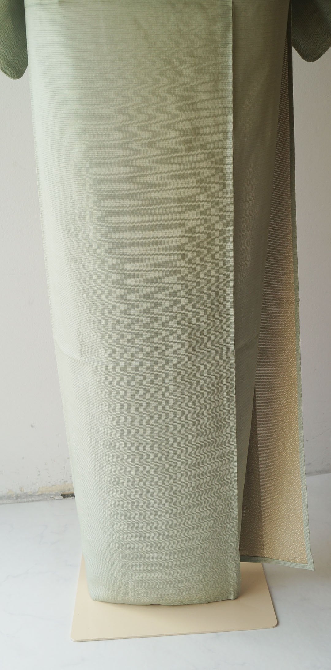 【夏・絽】柳染×白 よろけ縞柄 両面染 絽 小紋