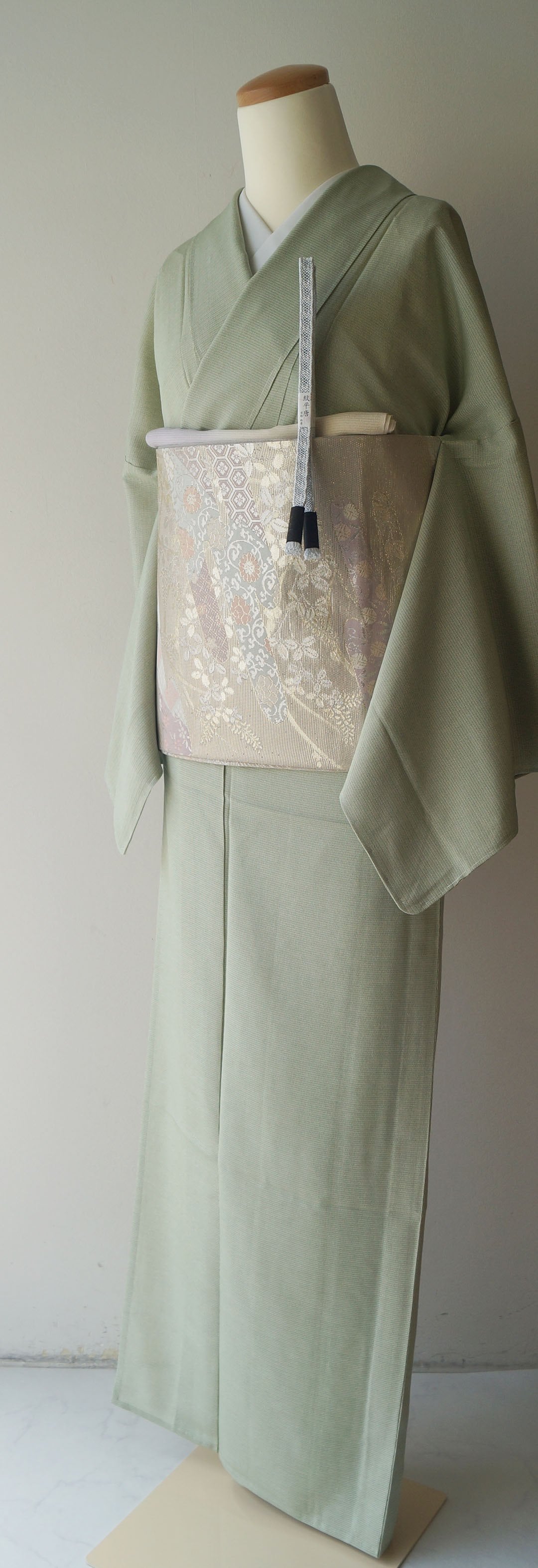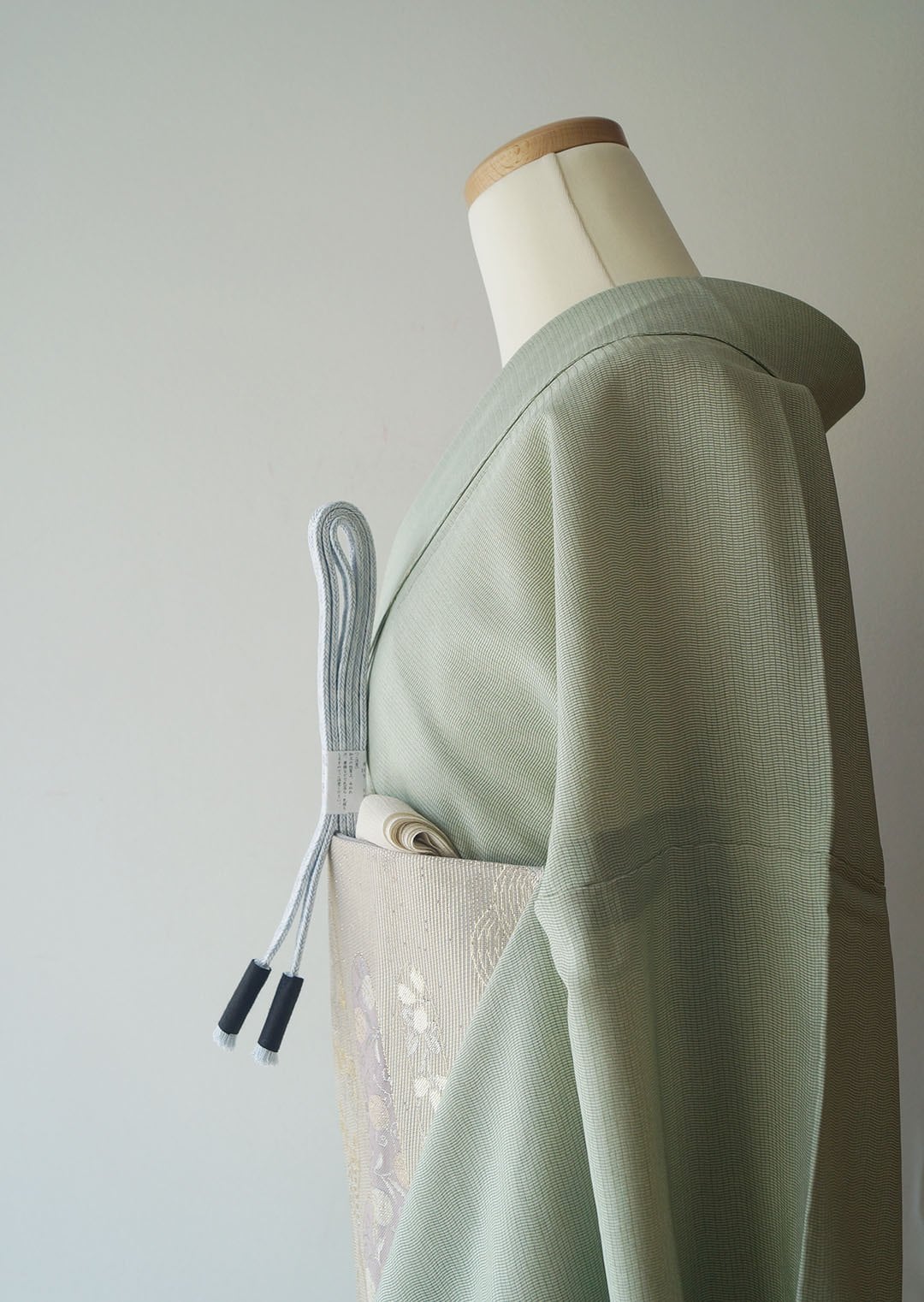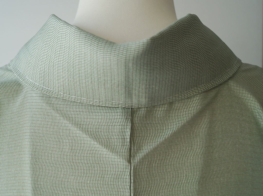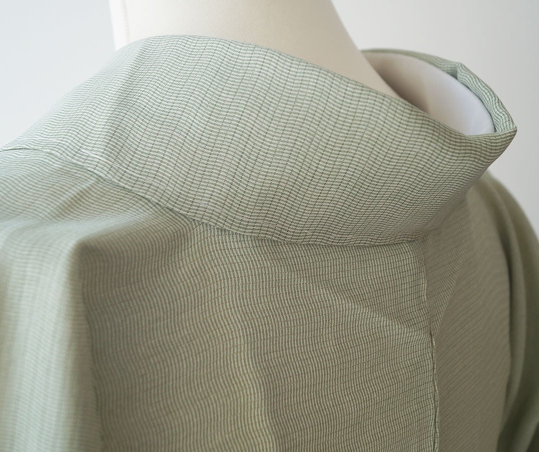 【夏・絽】柳染×白 よろけ縞柄 両面染 絽 小紋