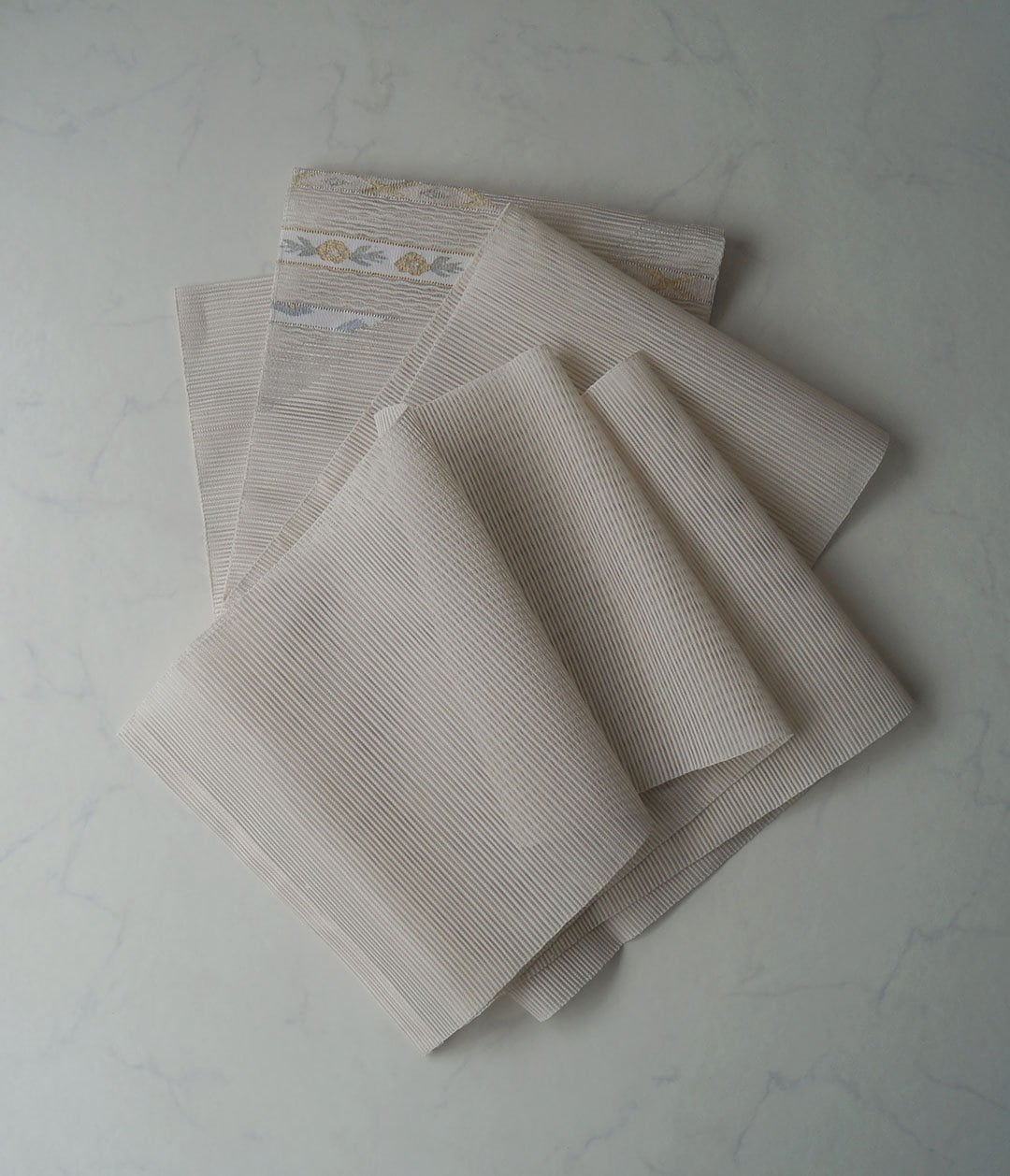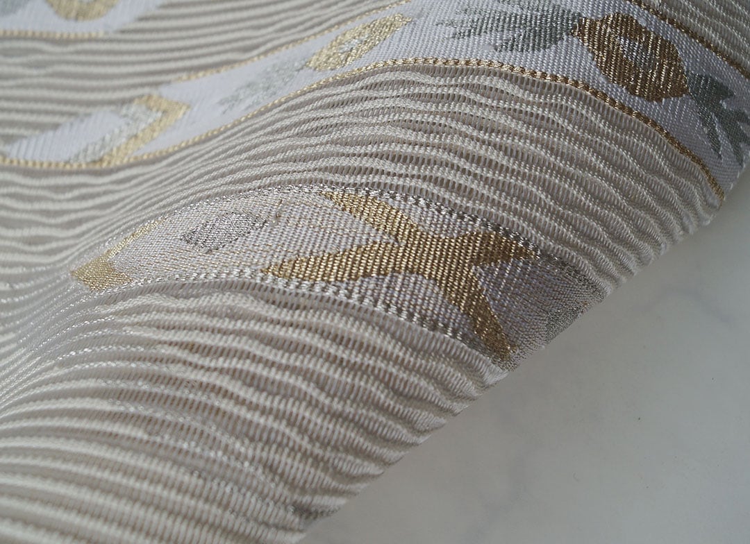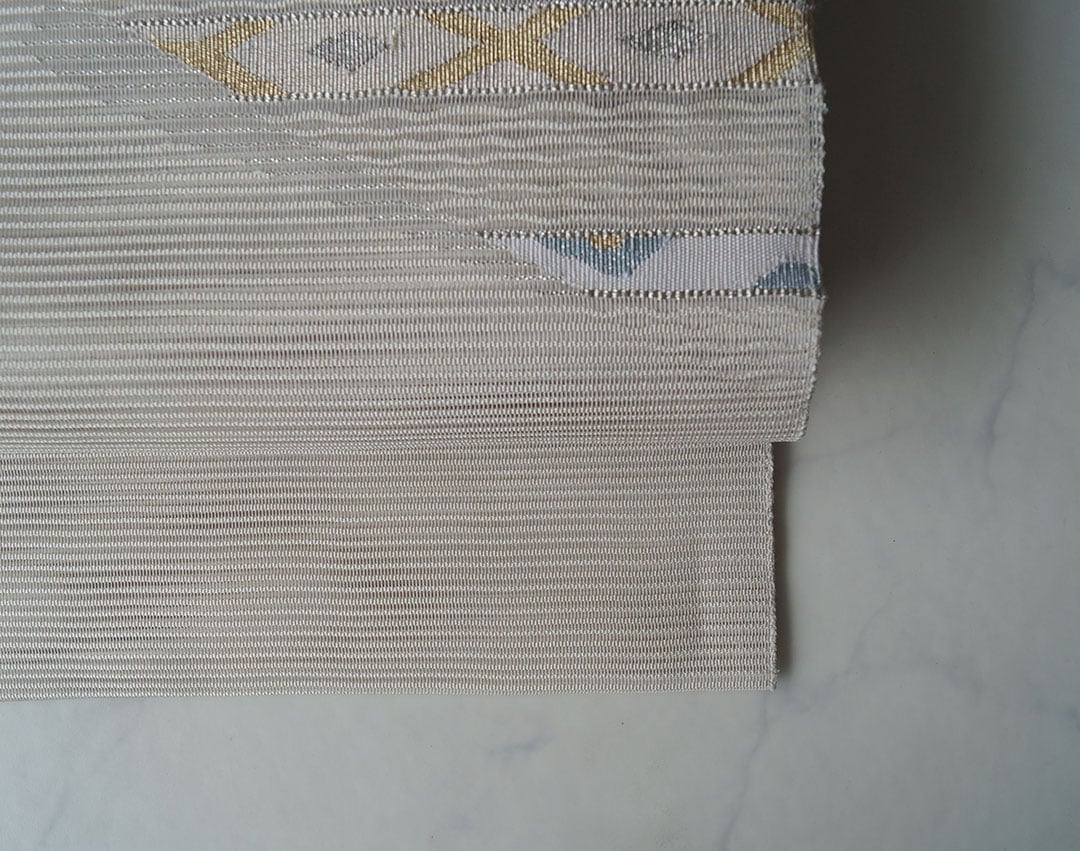 【夏なごや帯】生成り地 幾何学に花文 絽綴れ 開きなごや帯