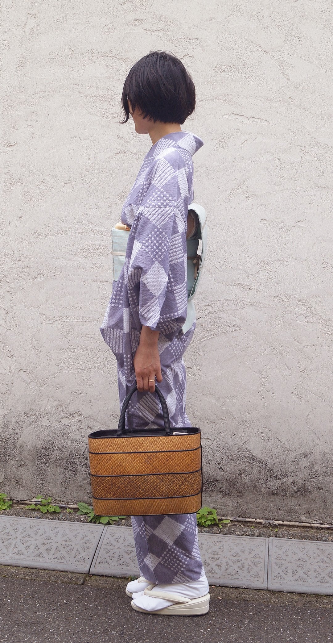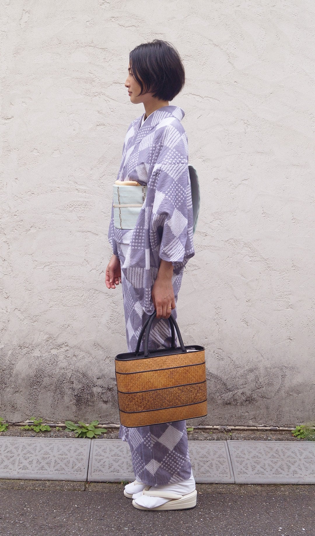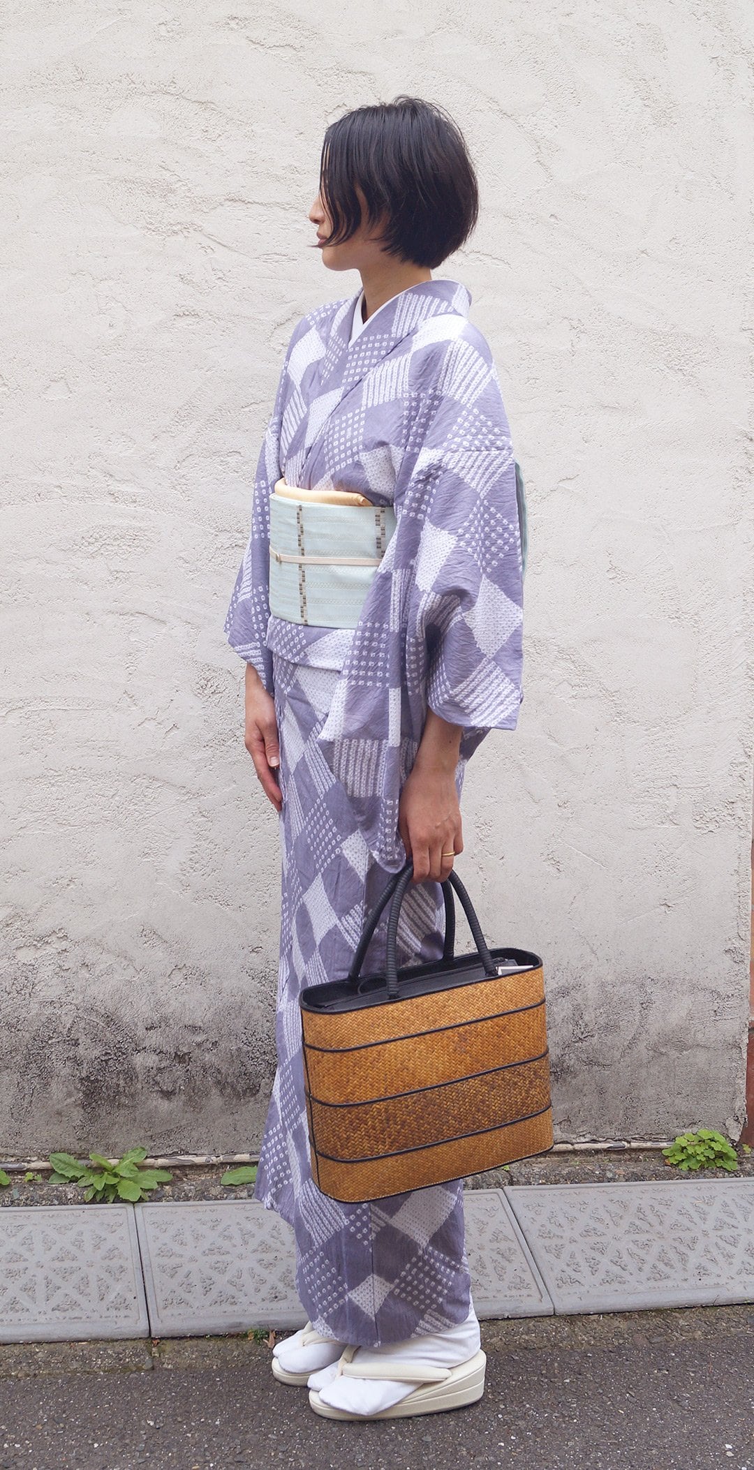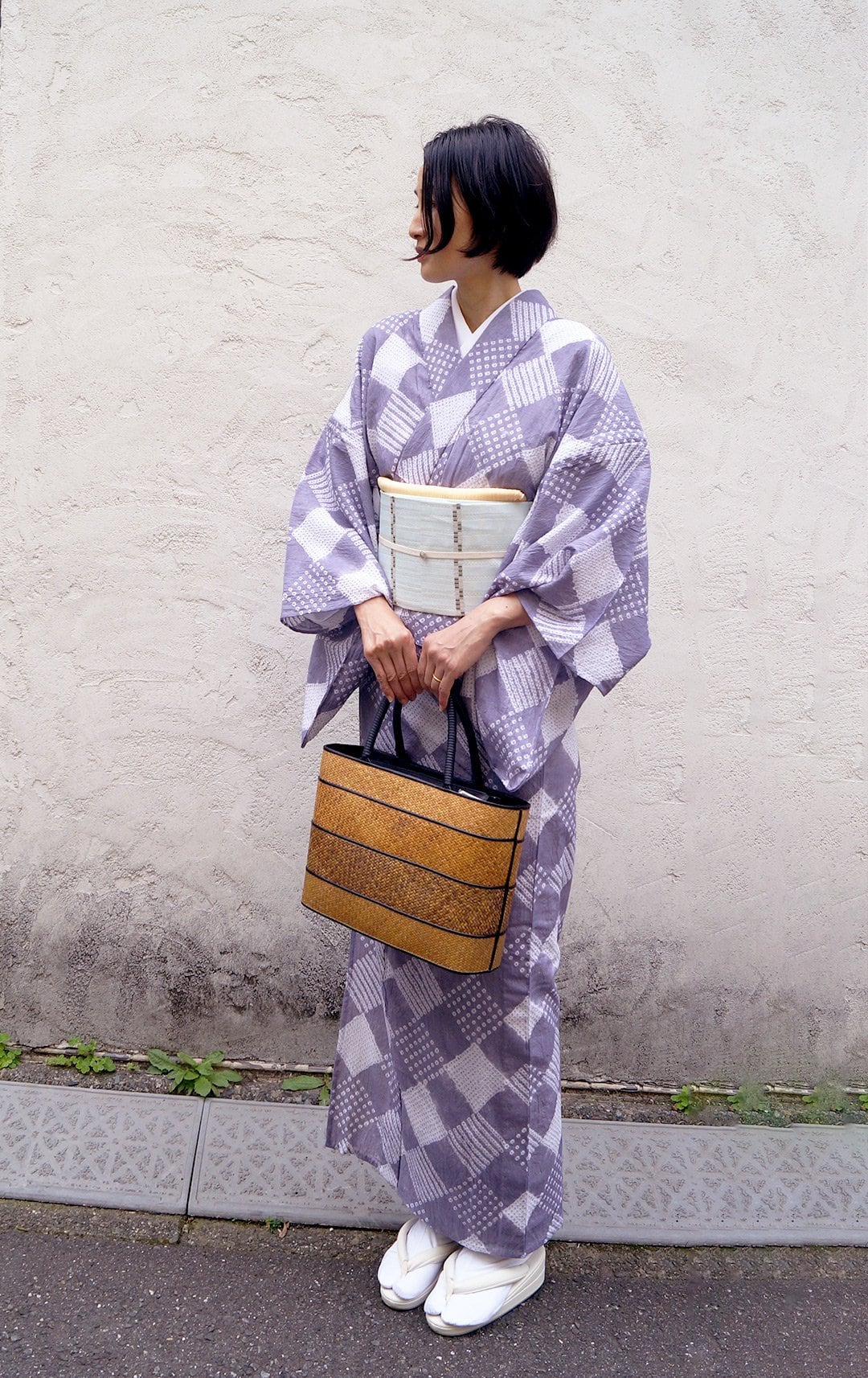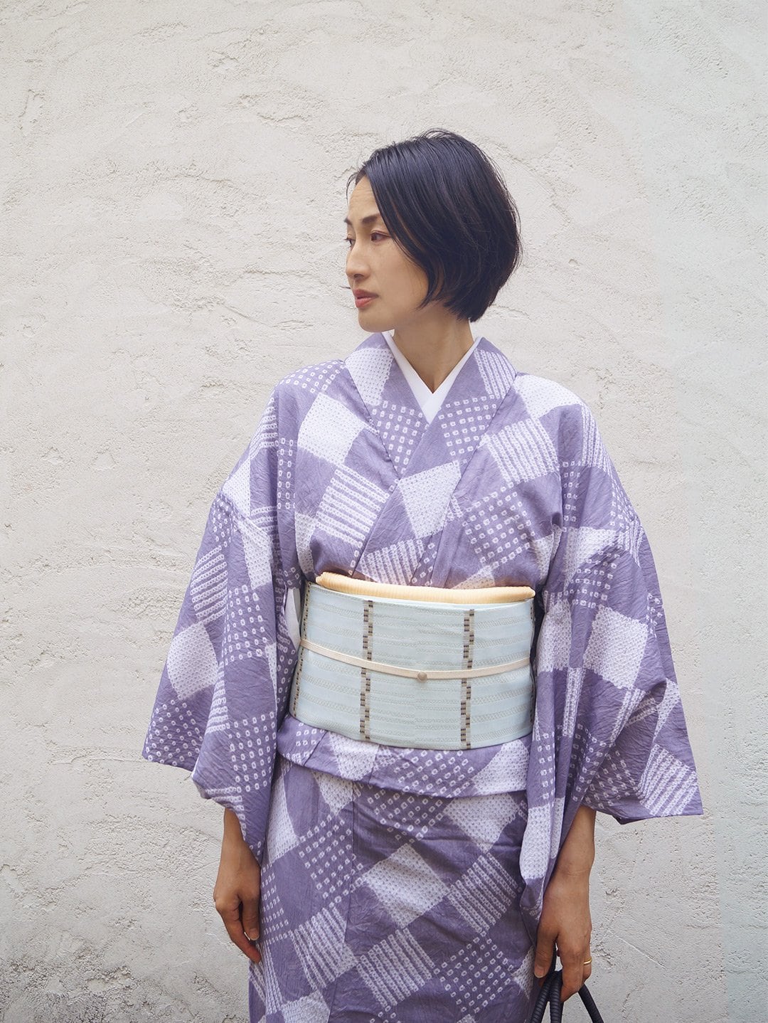 幾何学模様がおしゃれな絞り浴衣で、