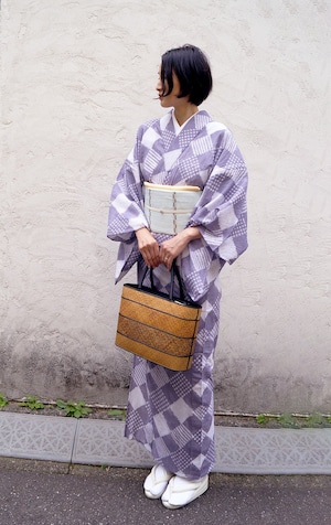 【有松絞り浴衣専門店つゆくさ・浴衣】鳩羽色 菱つなぎ 浴衣