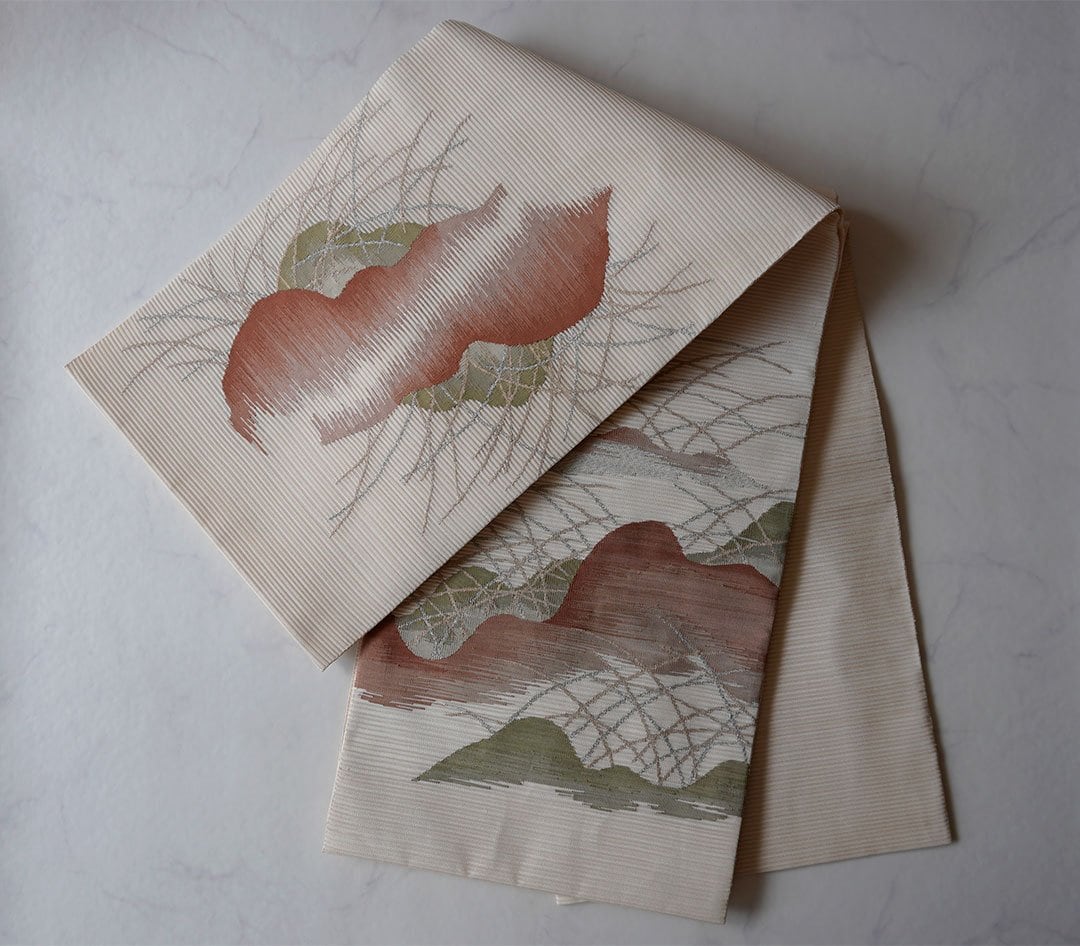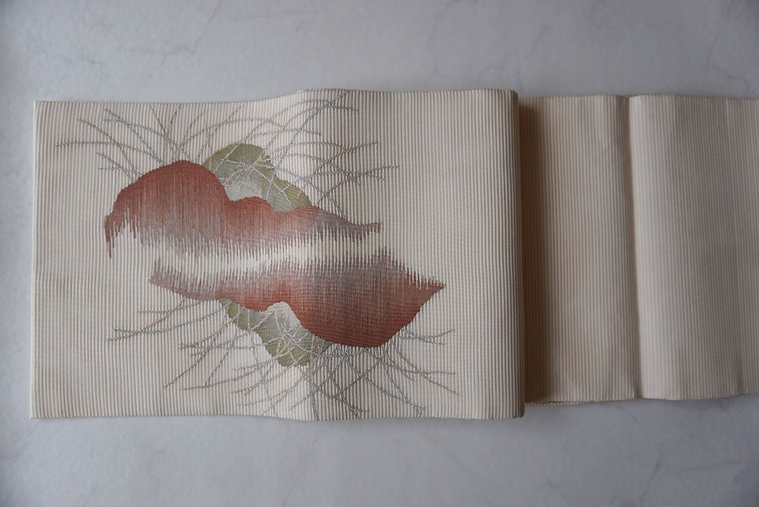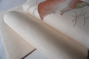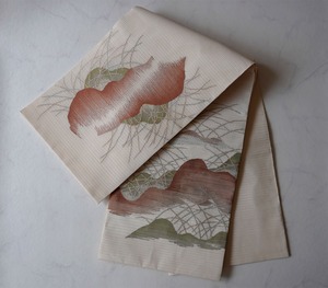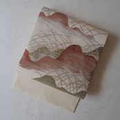 【夏・ふくろ帯】 鳥の子色地 山並みにすすき 絽綴れふくろ帯