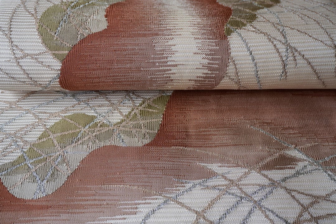 鳥の子色地に赤茶系やカーキ色の