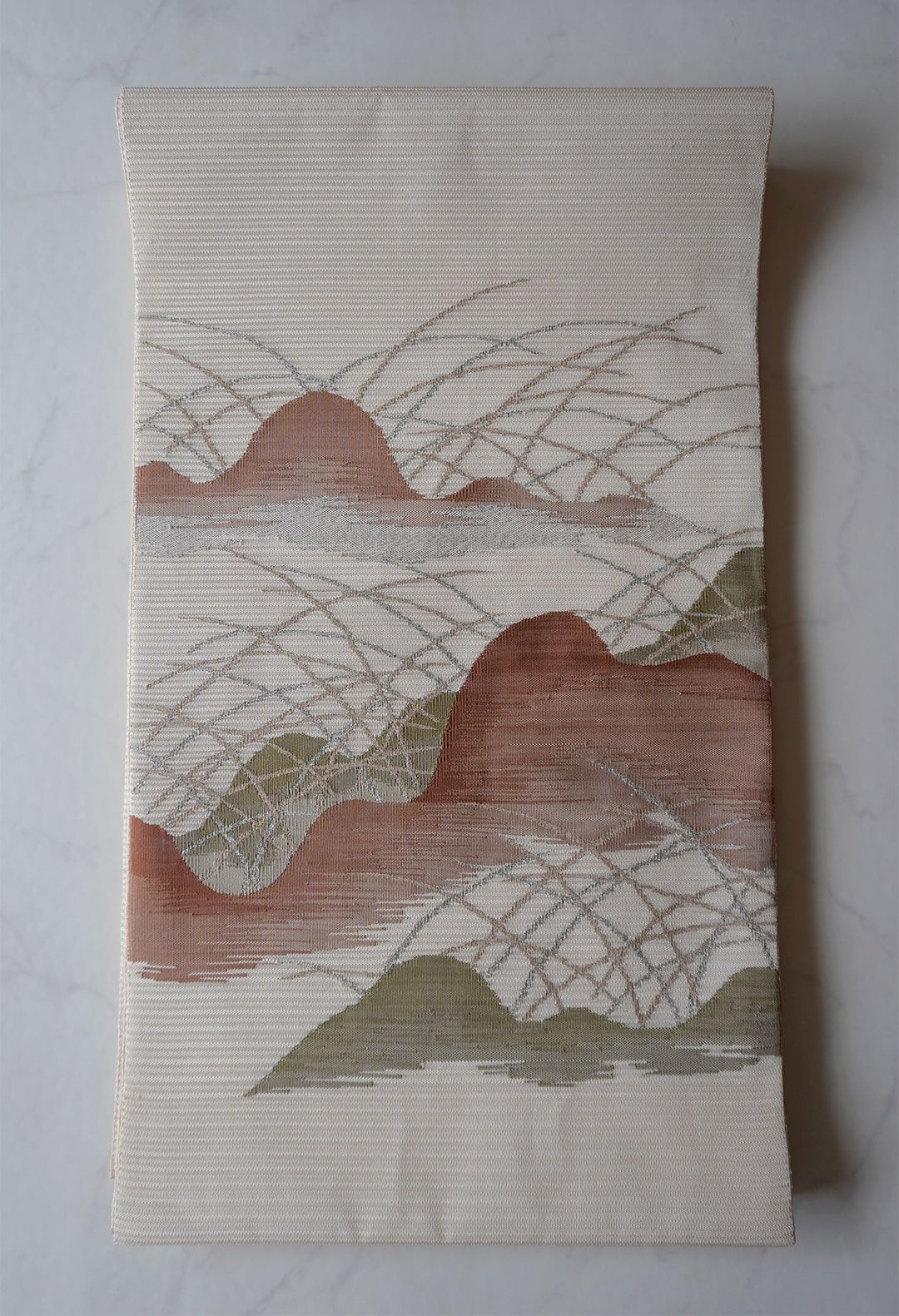 濃淡で山並みが織り出されたお品です。