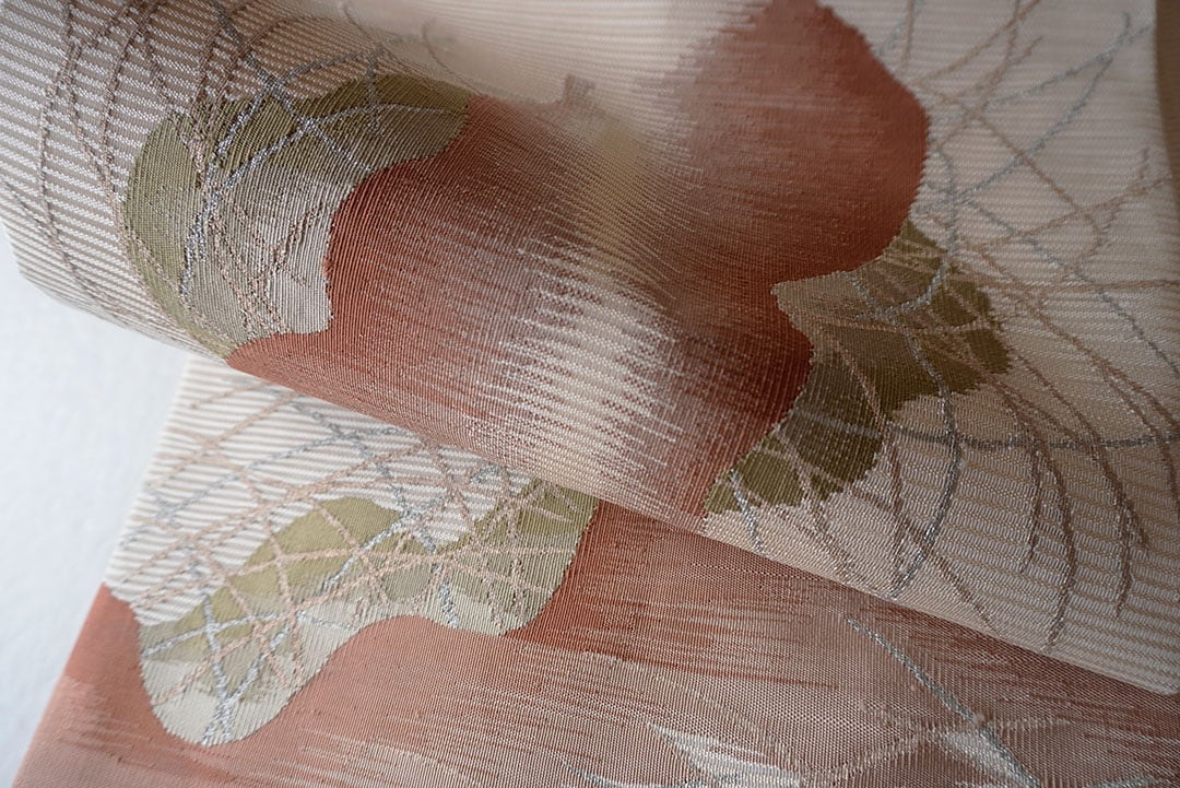 金・銀糸で織られたすすきがマットな煌めきを