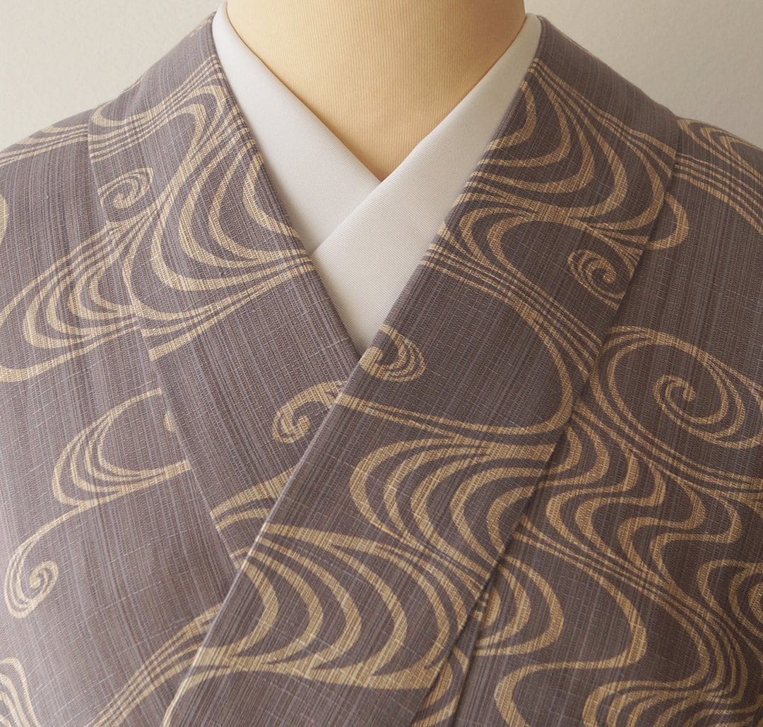 【竺仙・浴衣】竺仙製 煤色×砂色 奥州小紋 観世水