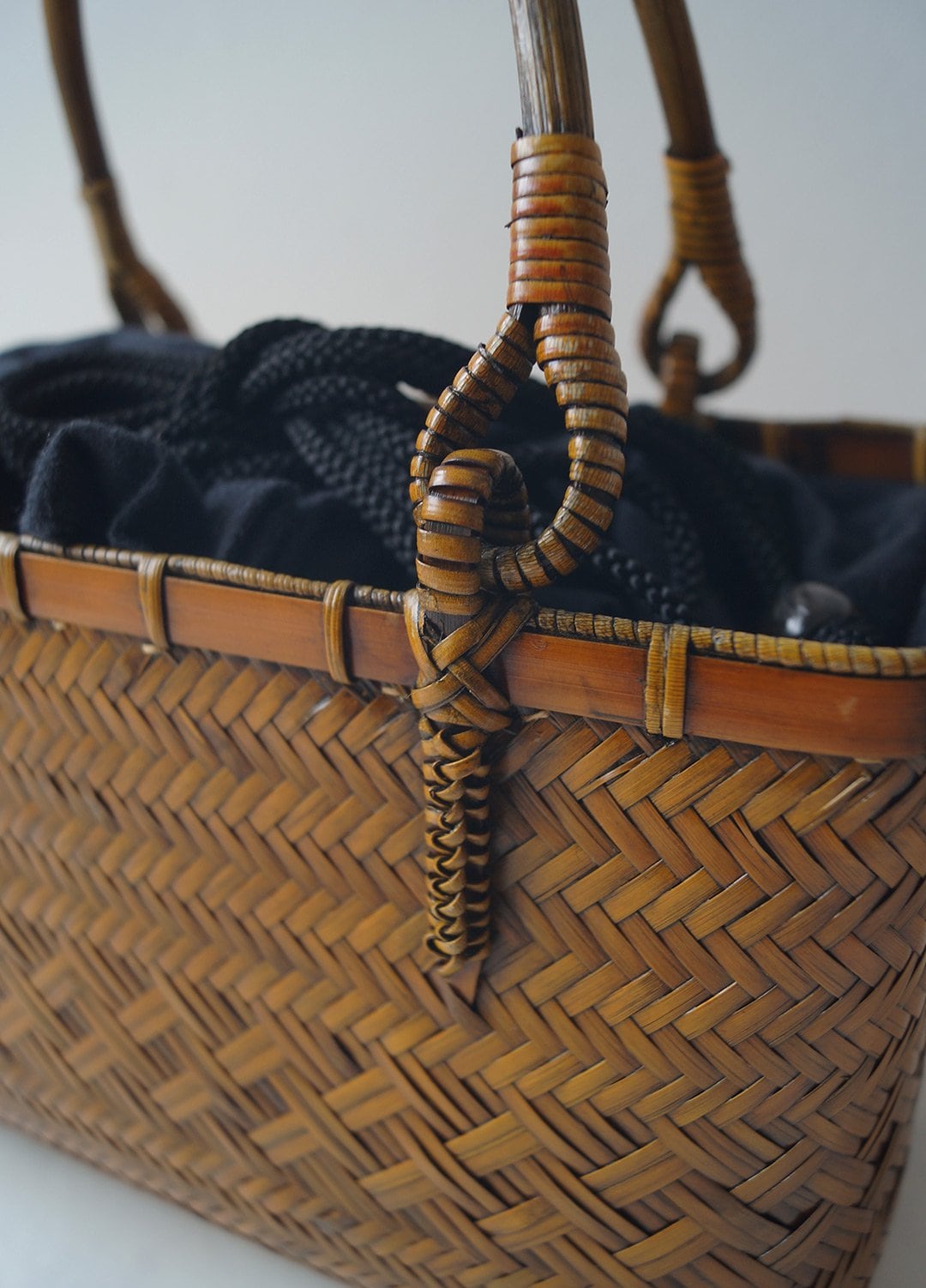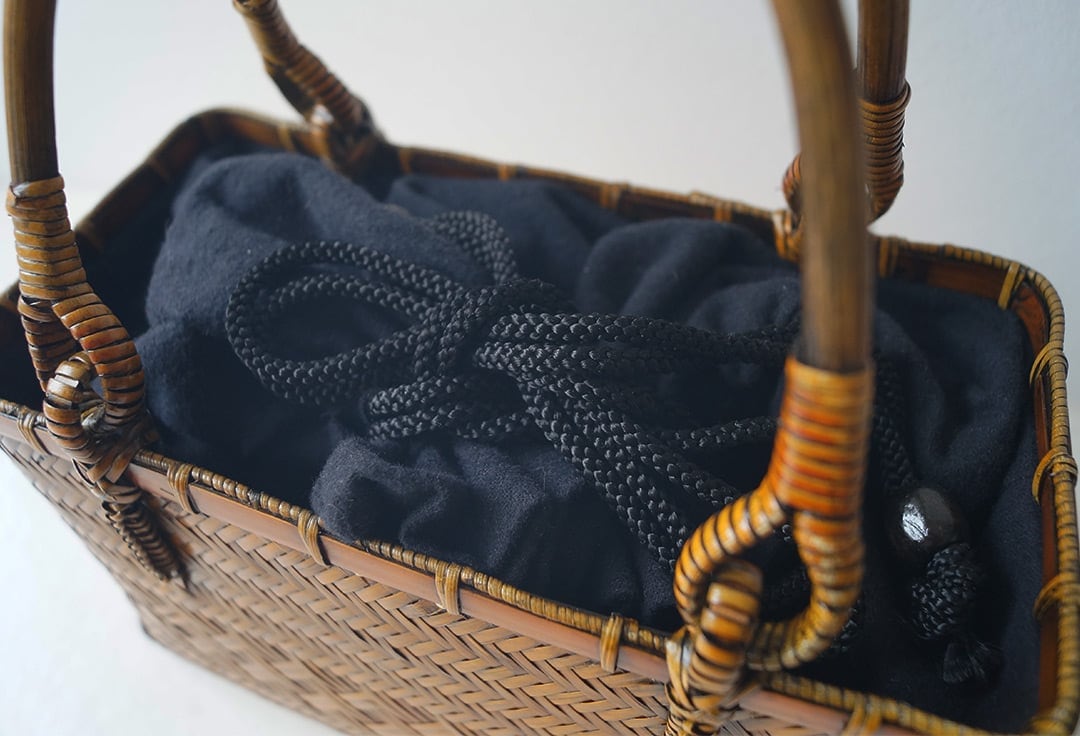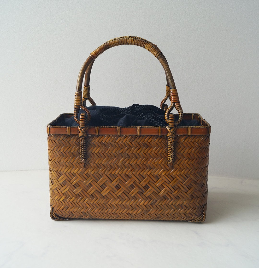 夏の和装を引き立てる、竹製の軽い籠バッグです。