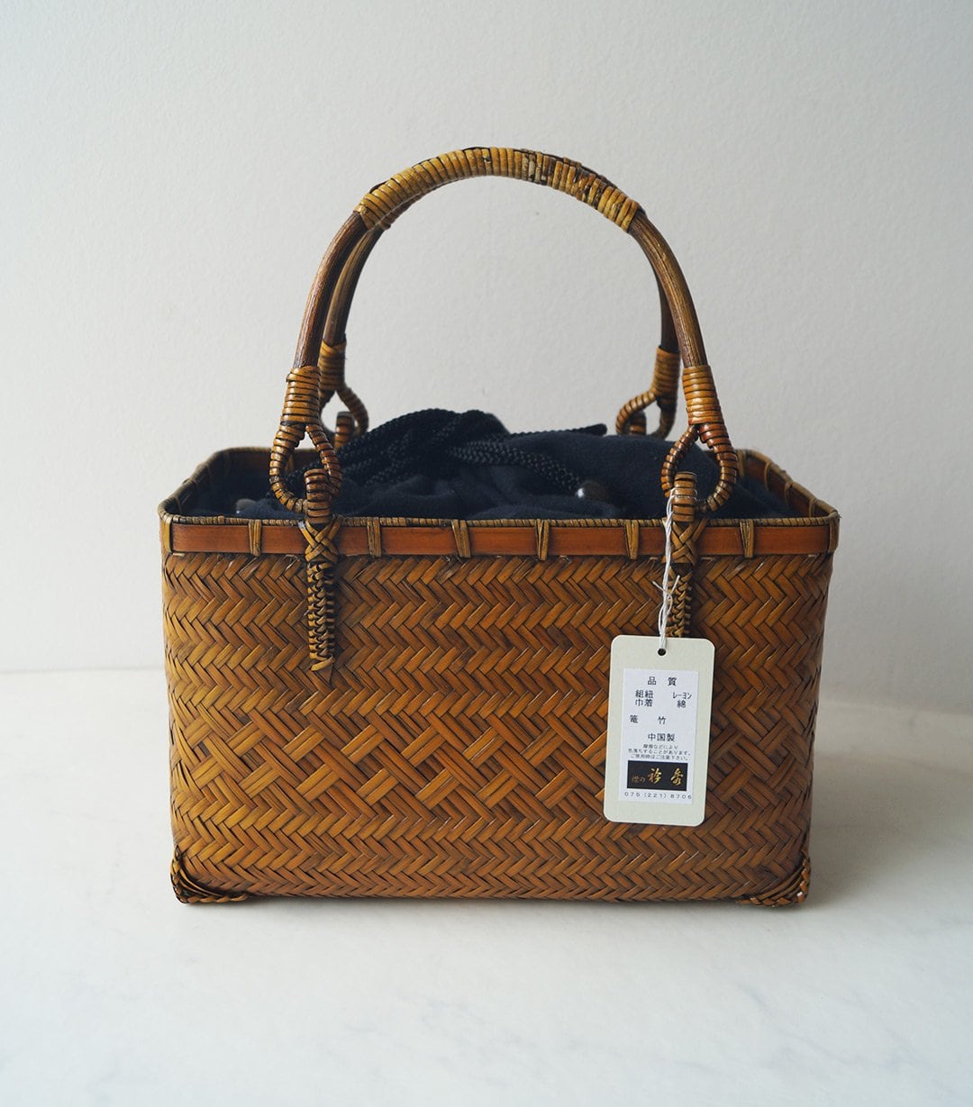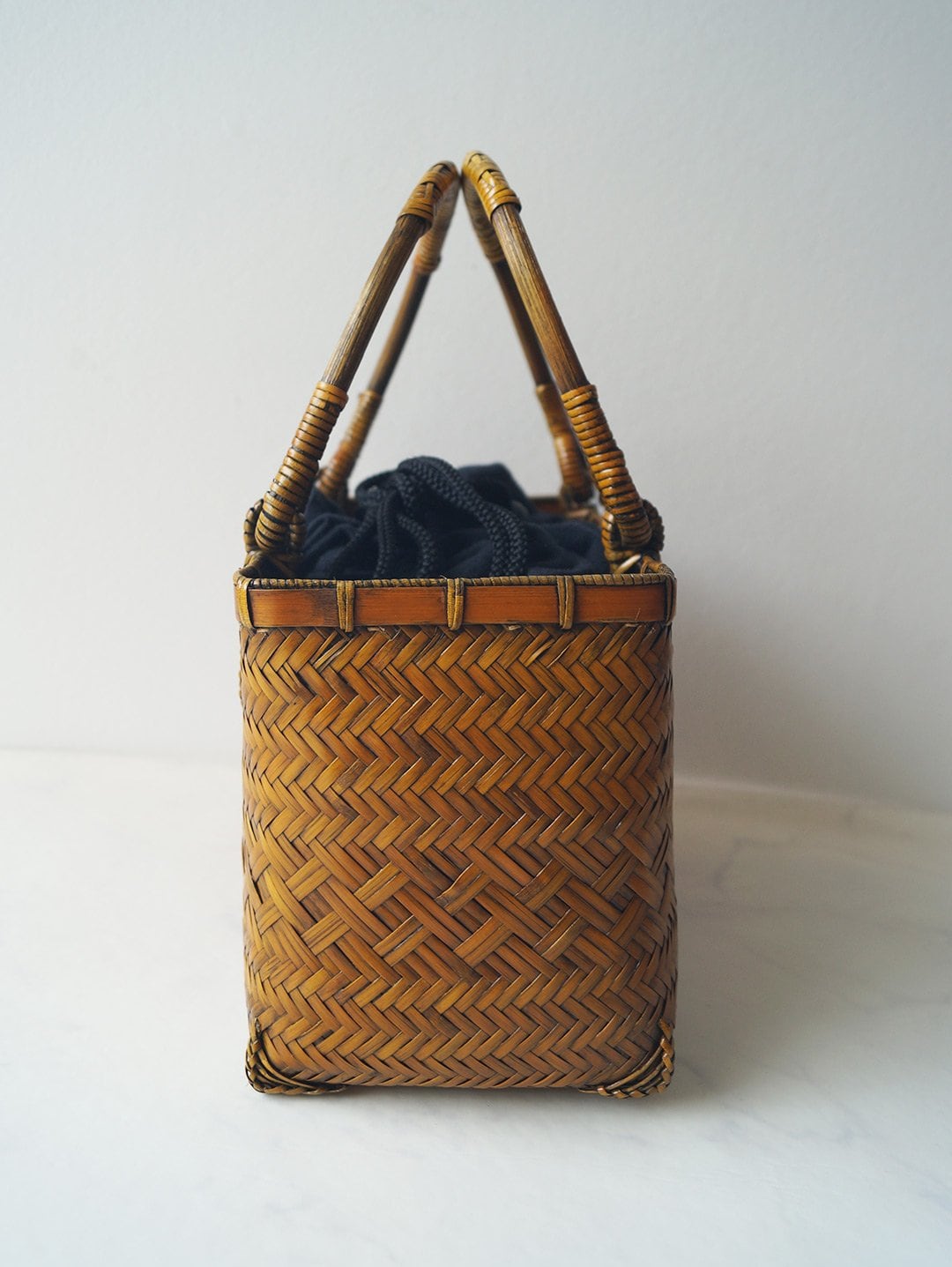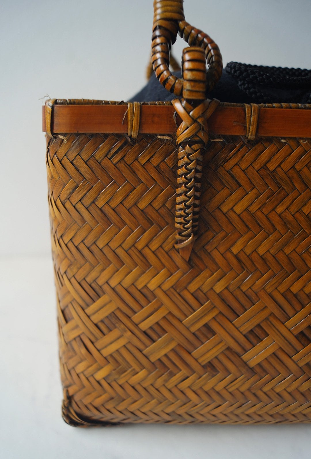 夏の和装を引き立てる、竹製の軽い籠バッグです。