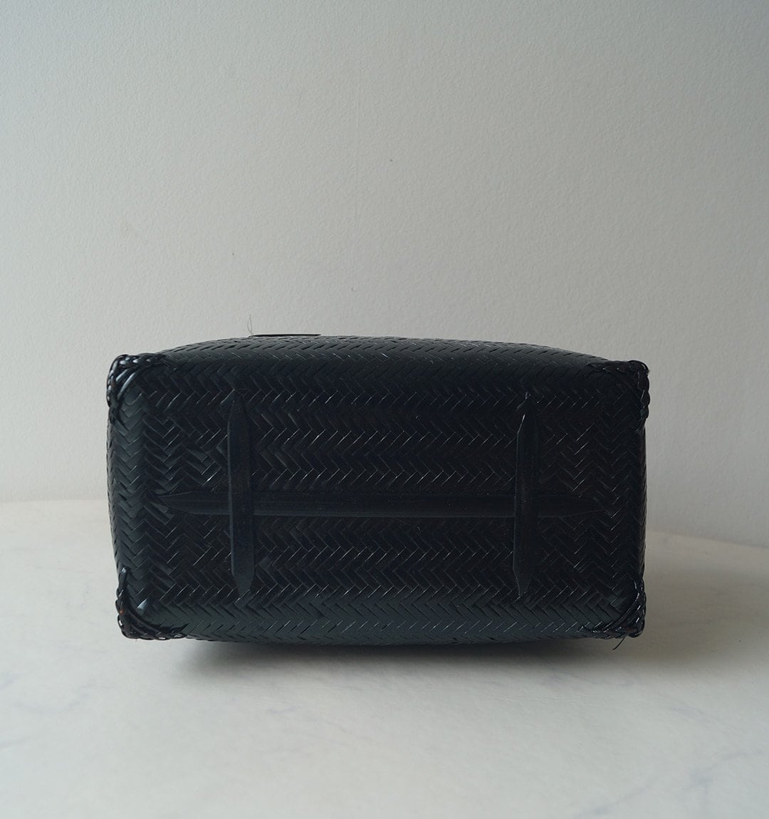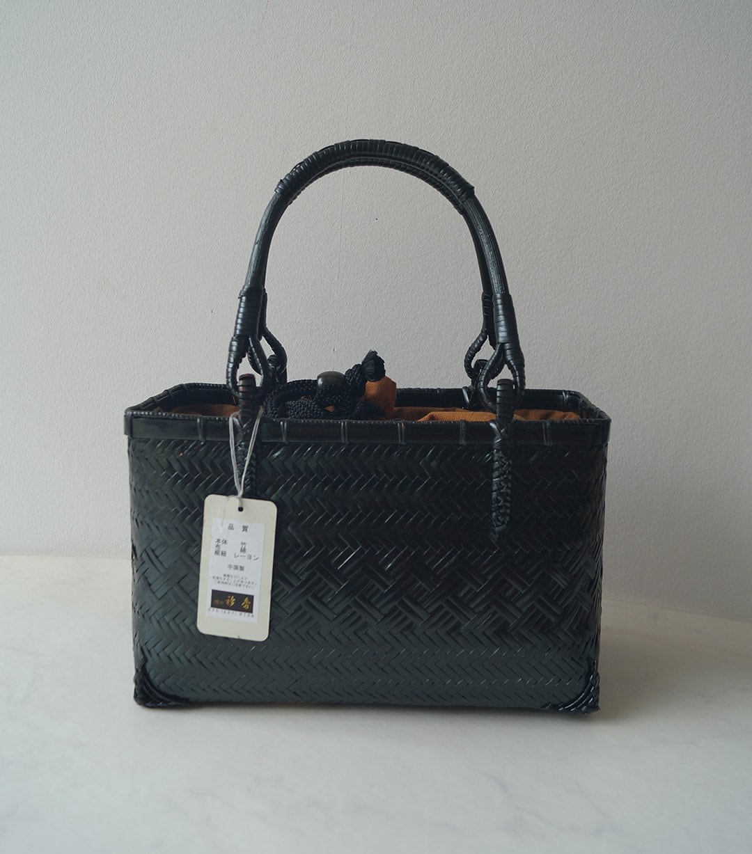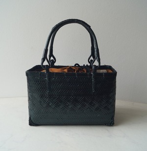 【バッグ】内布付き 竹籠バッグ 黒色×土色 250314Ⓘ