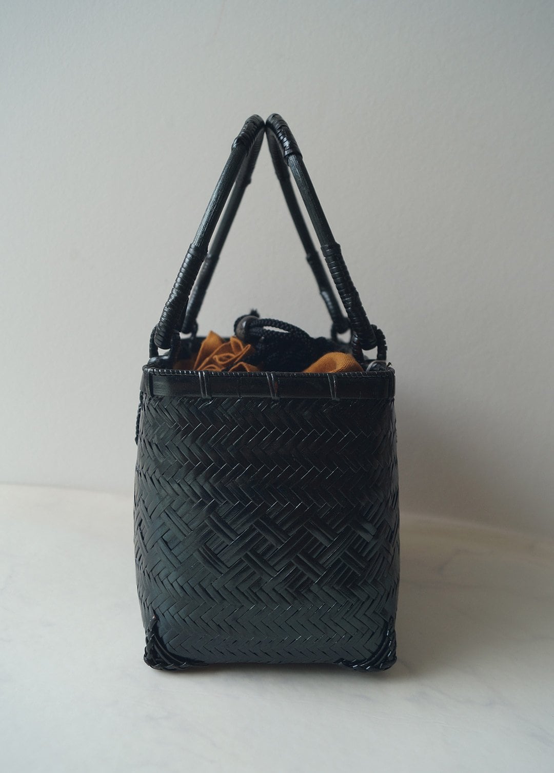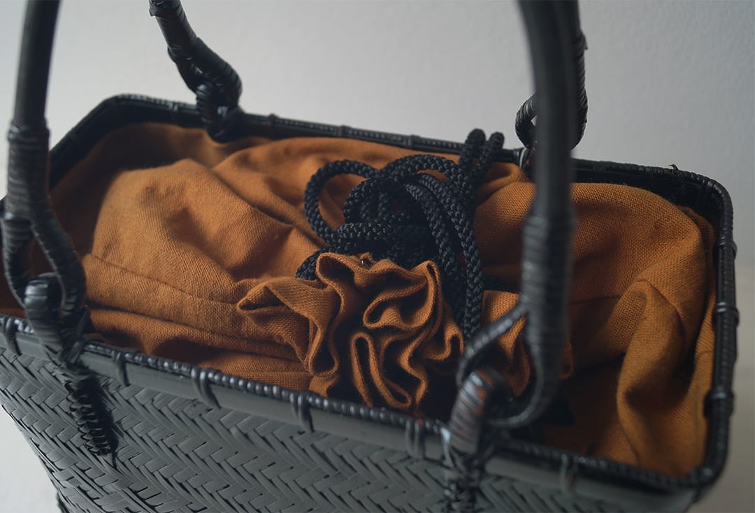 夏の和装を引き立てる、竹製の軽い籠バッグです。