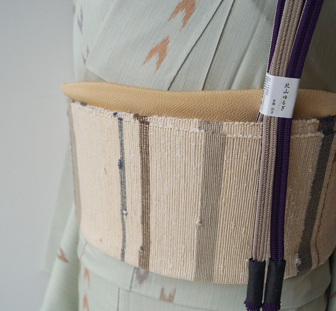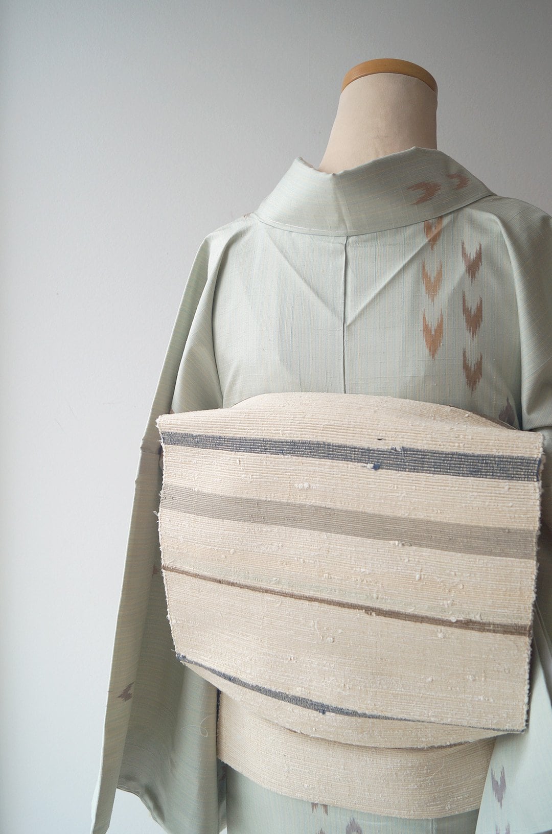 【なごや帯】ナチュラルカラー 横段 八寸紬なごや帯