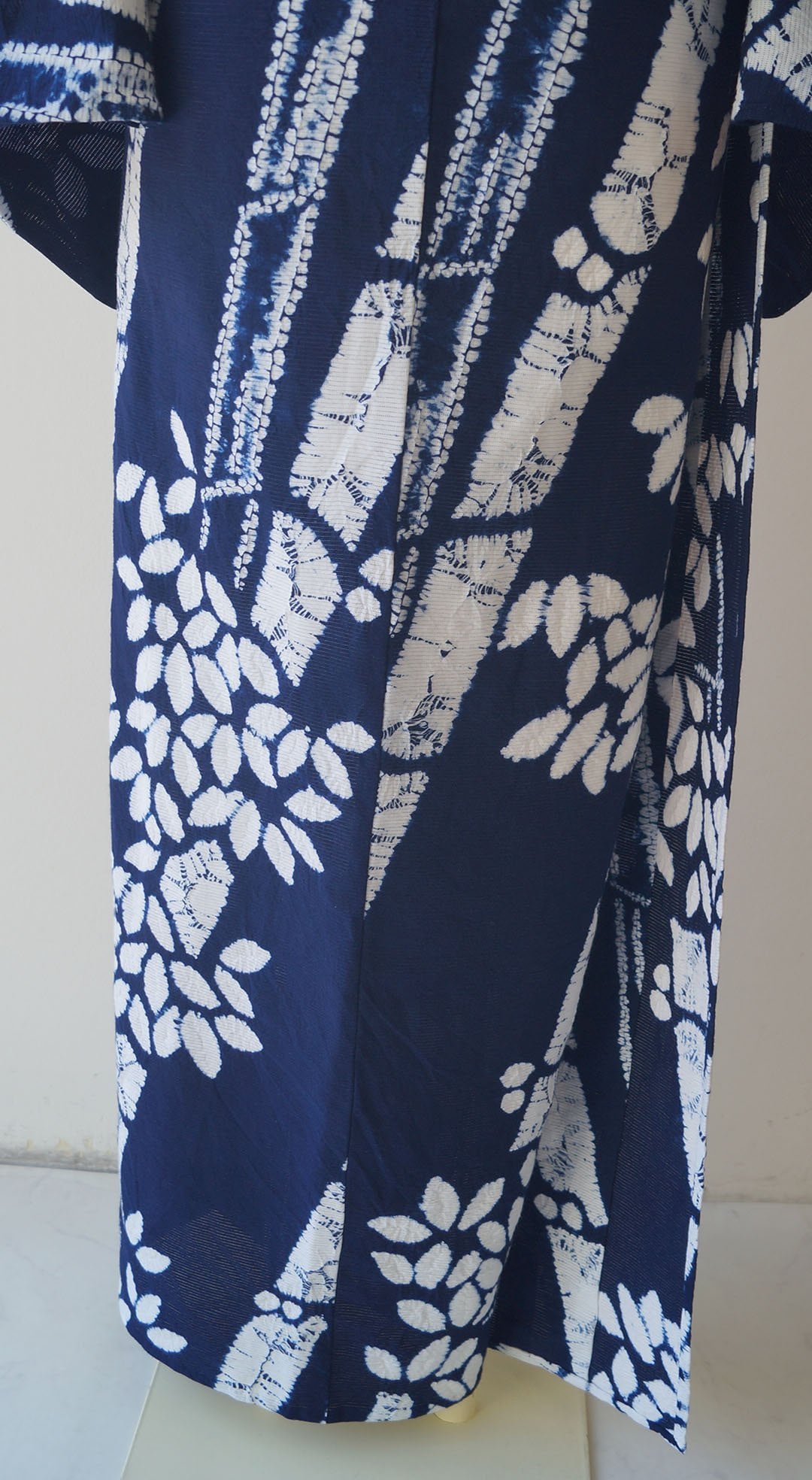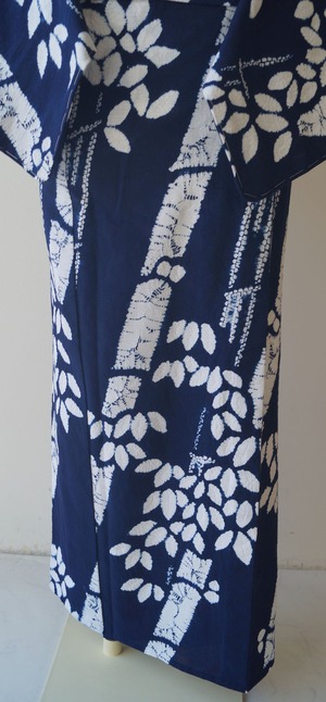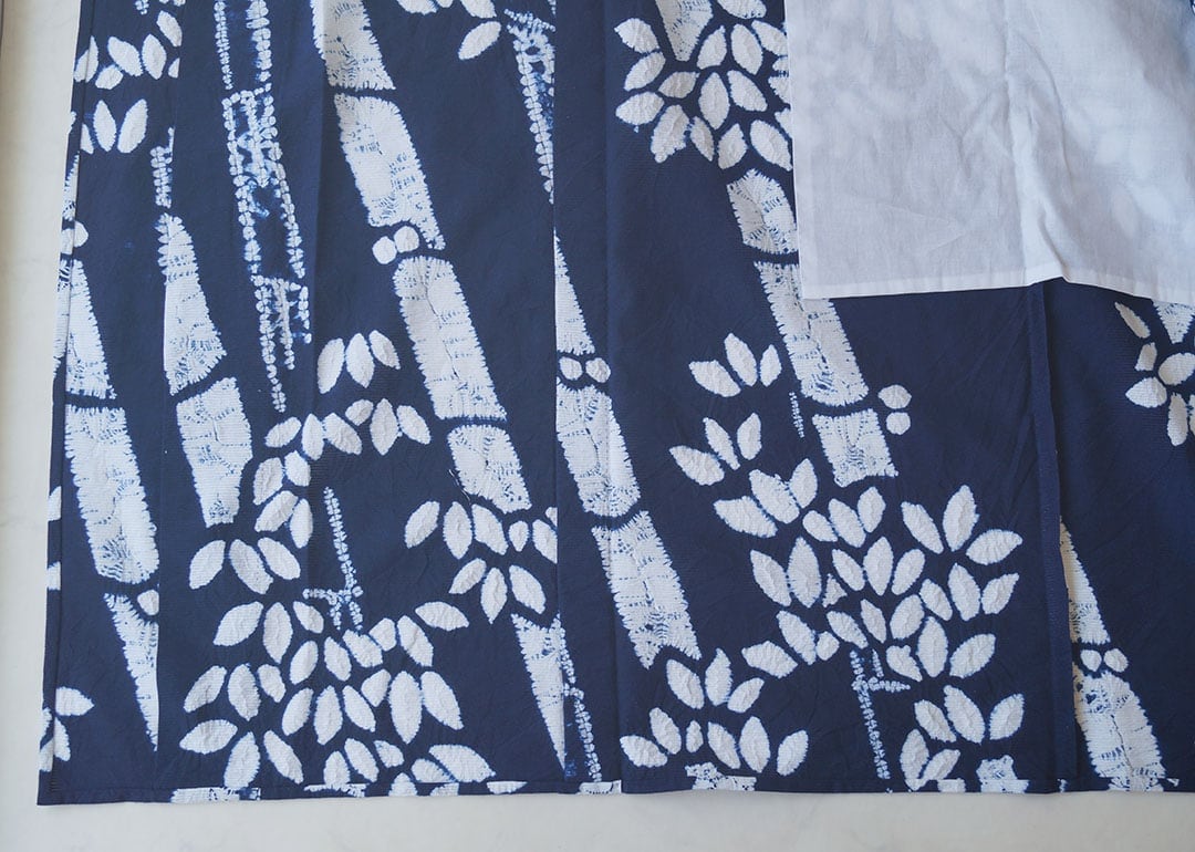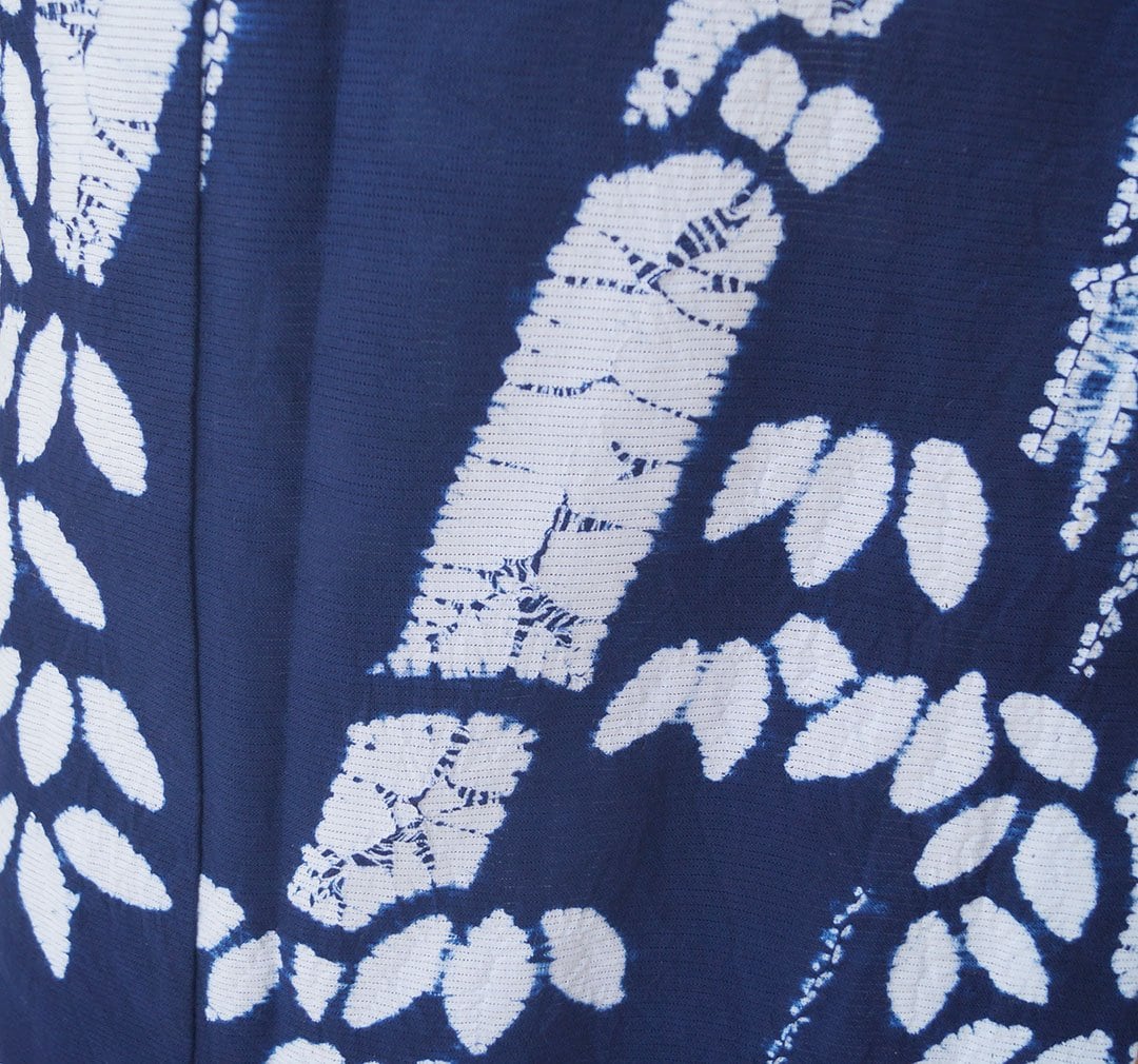 【有松絞り浴衣】藍色×白色 竹笹文 仕立上がり浴衣