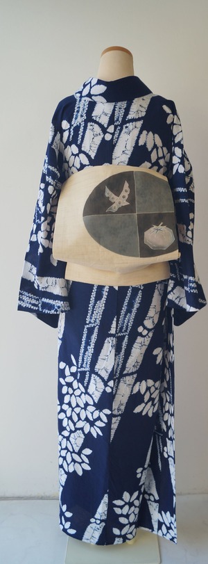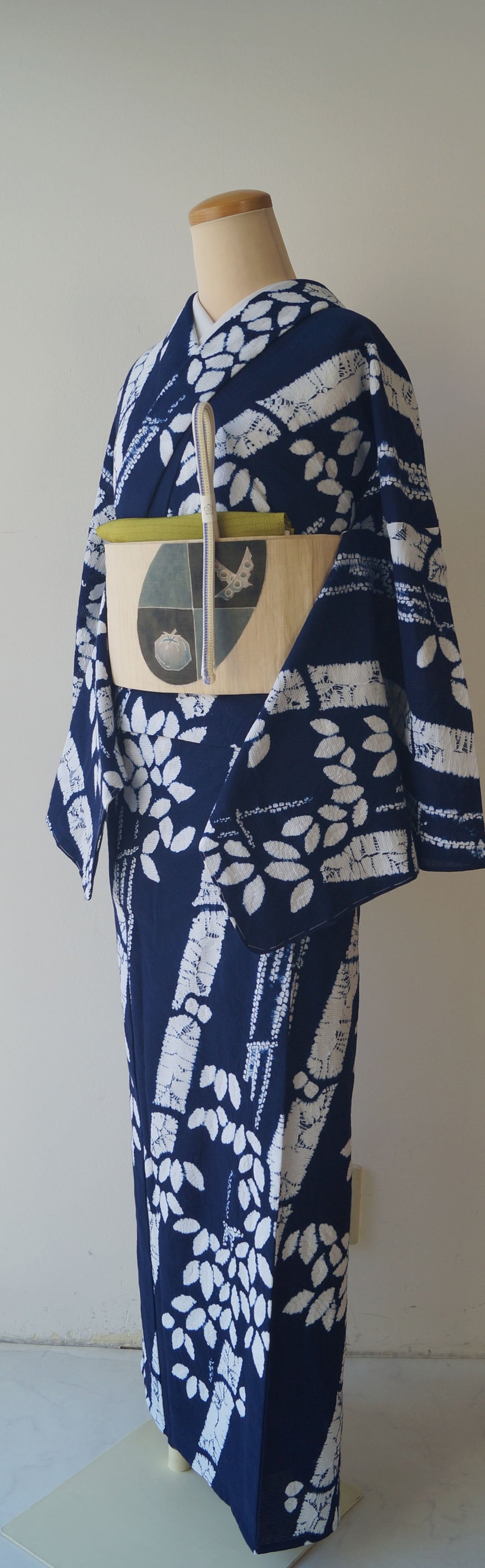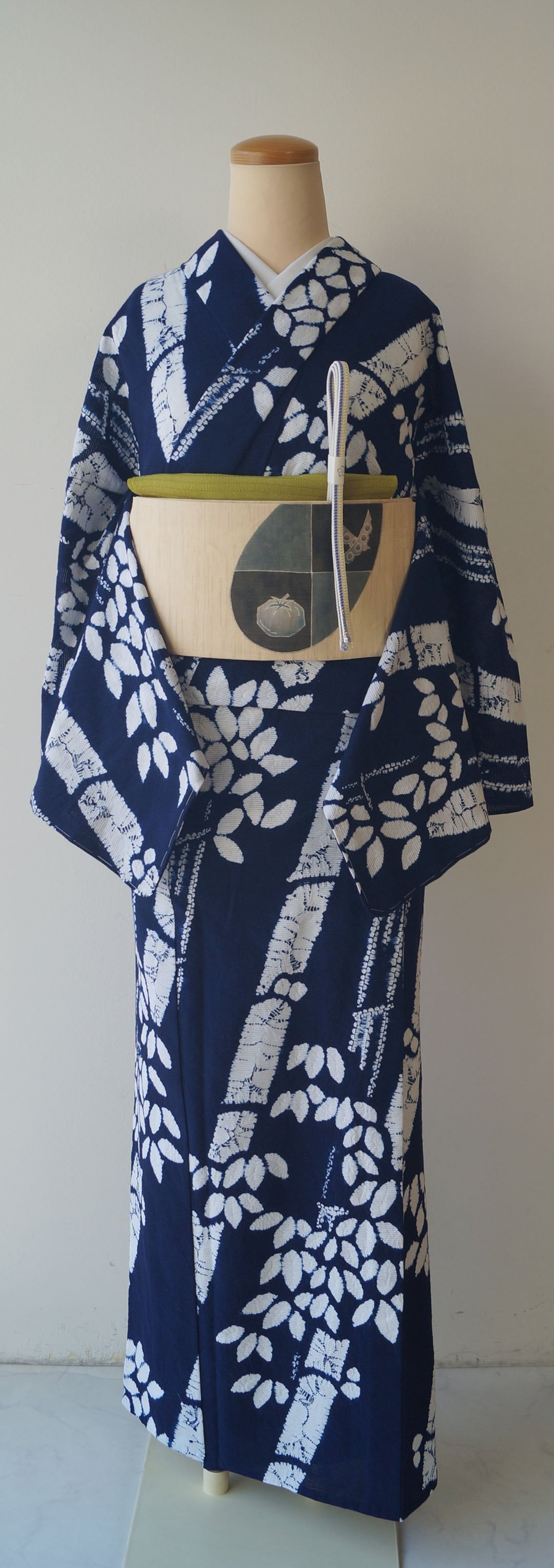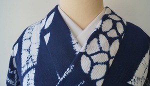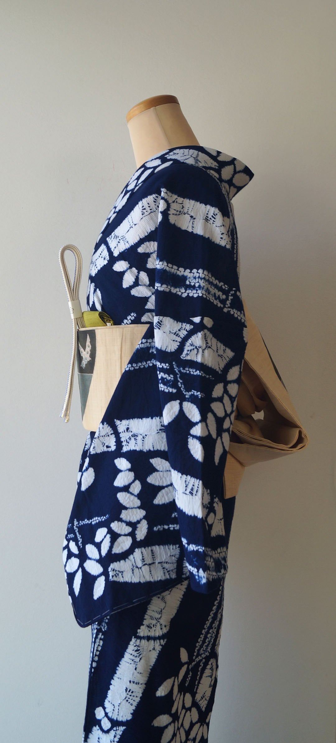 【有松絞り浴衣】藍色×白色 竹笹文 仕立上がり浴衣