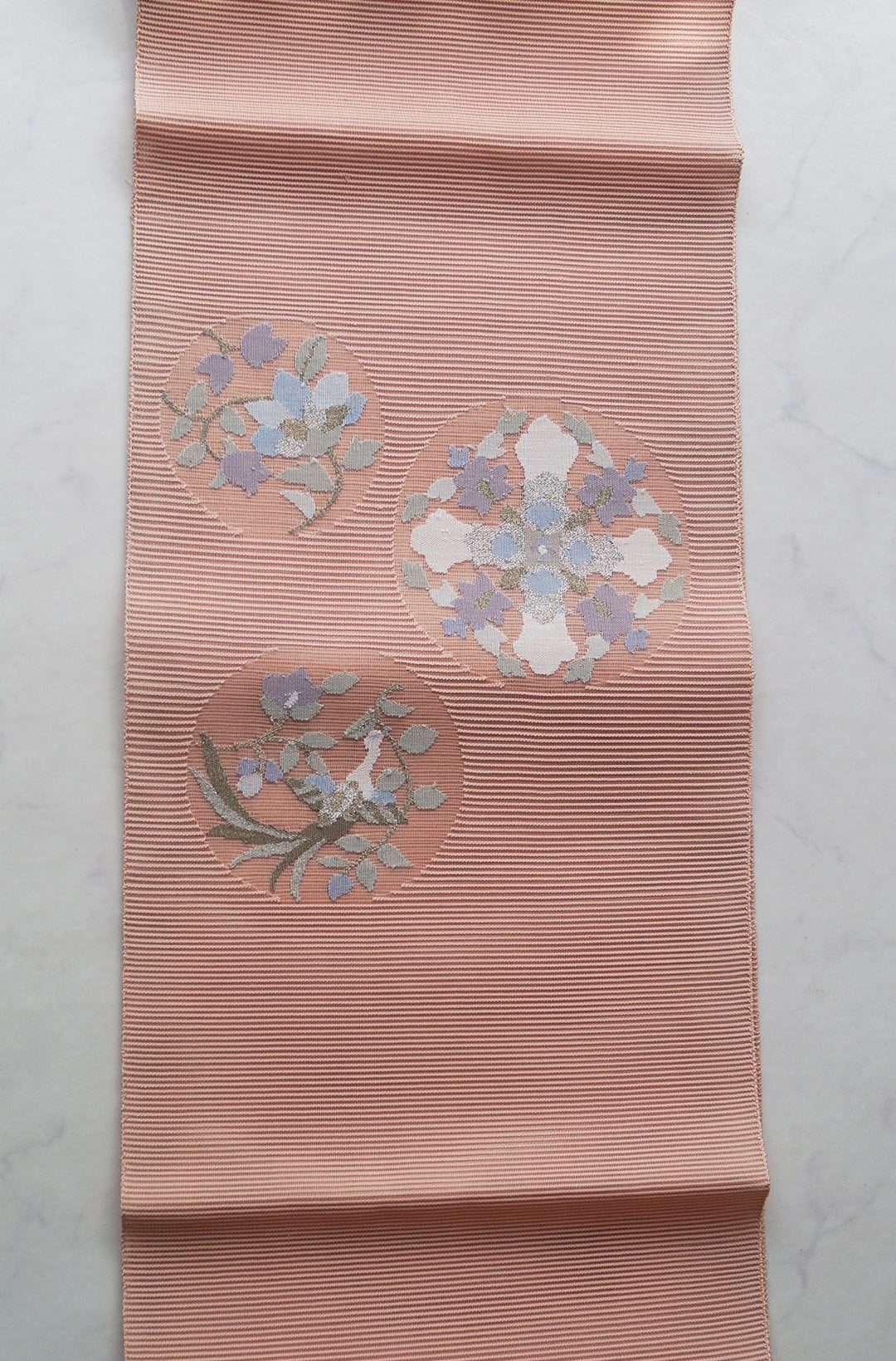 丸に花文様が織り込まれております。
