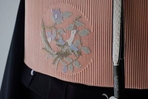 宍色の絽綴れのふくろ帯。