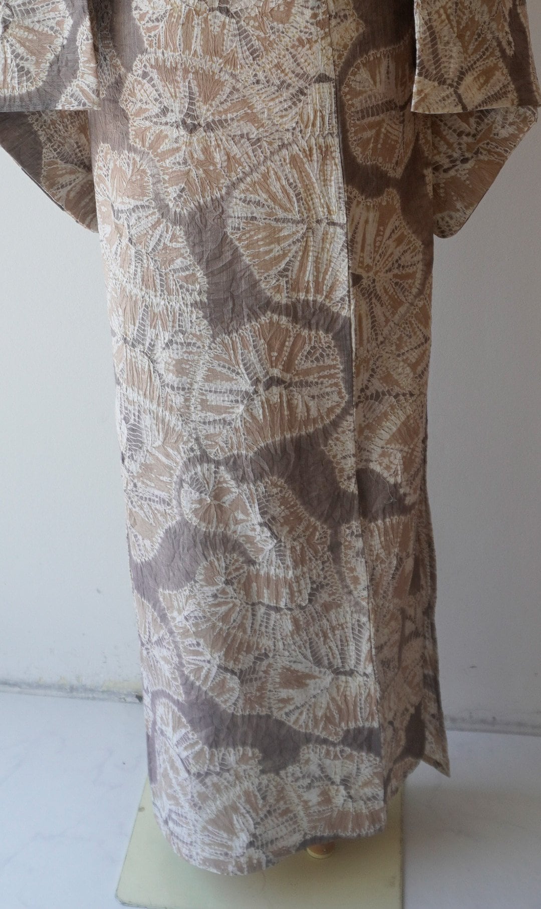 【有松絞り浴衣】白茶×鳩羽鼠 抽象文 仕立上がり浴衣