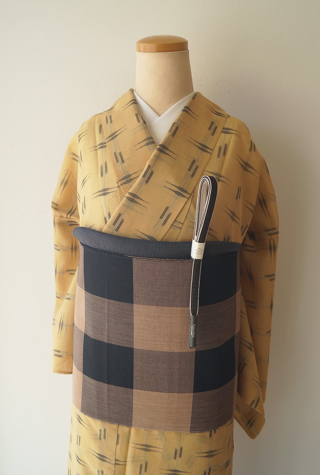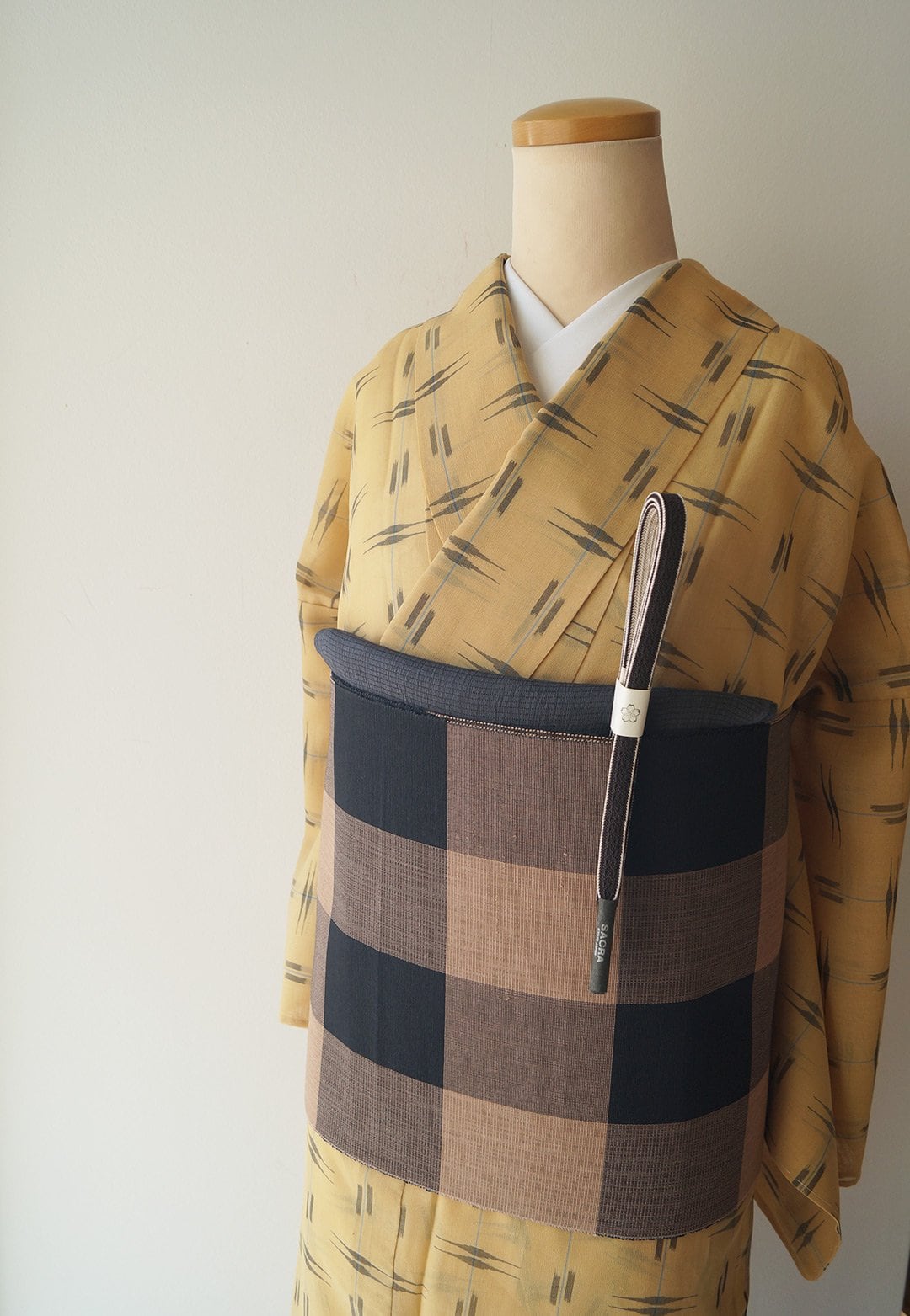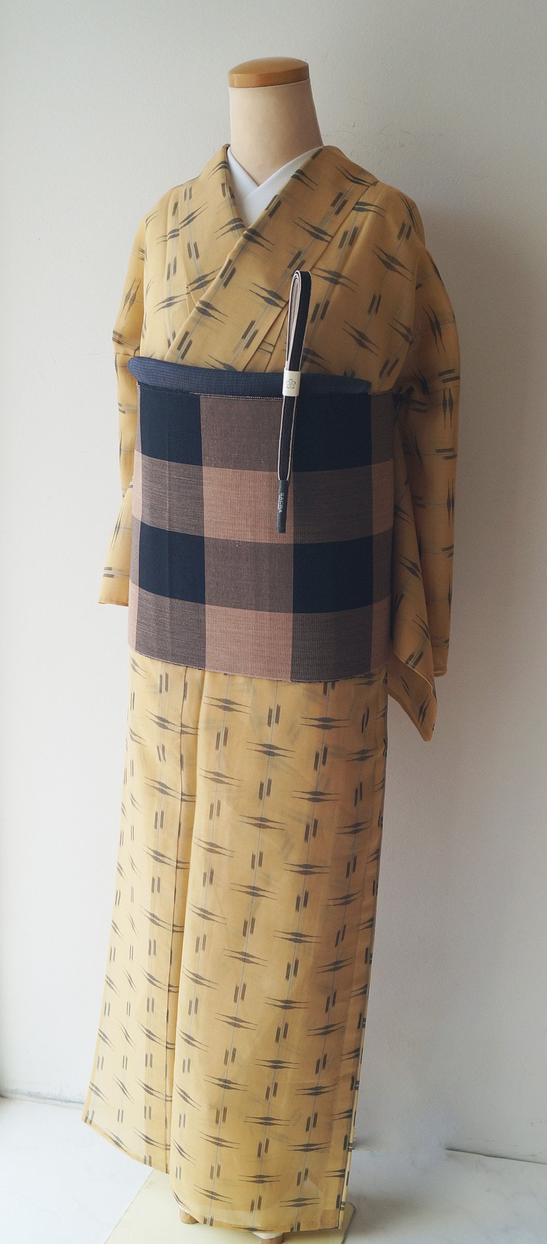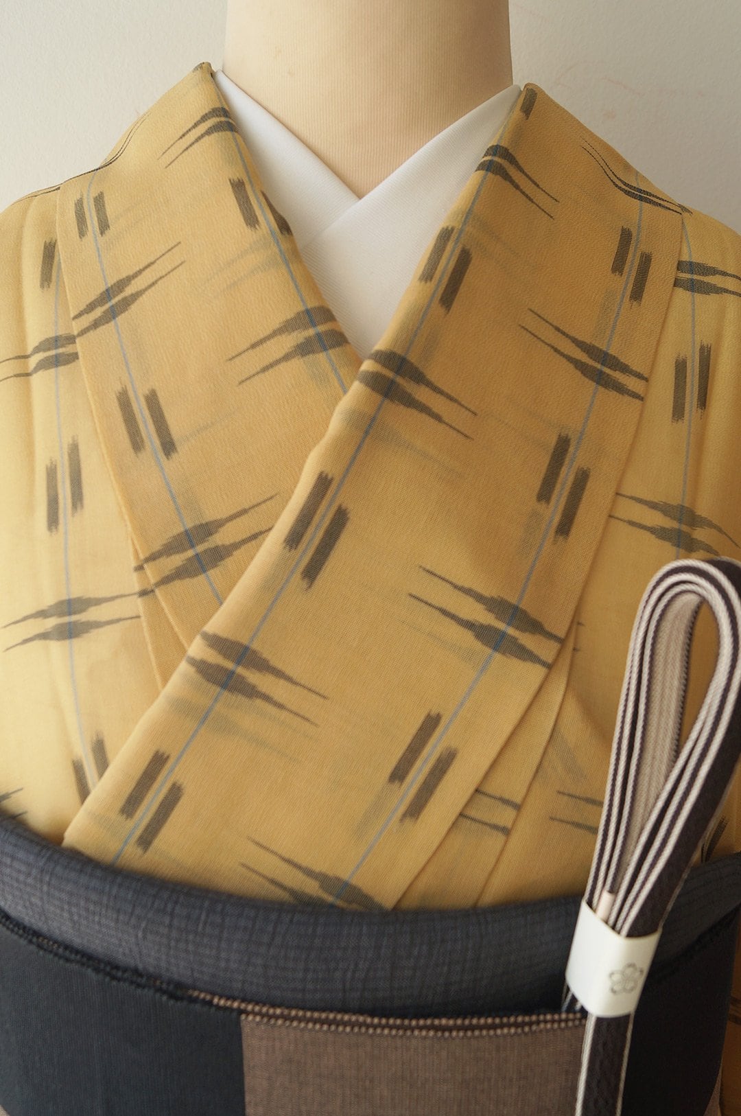 【夏・紬】飴色 縦横絣柄 本場琉球絣