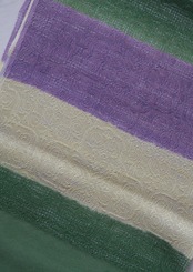 【和小物さくら・帯揚げ】緑色×刈安色×紫色 横段抜染 点描柄 紗 帯揚げ No.250624②