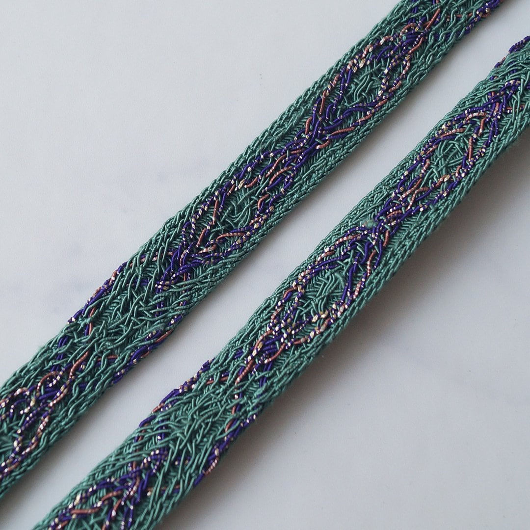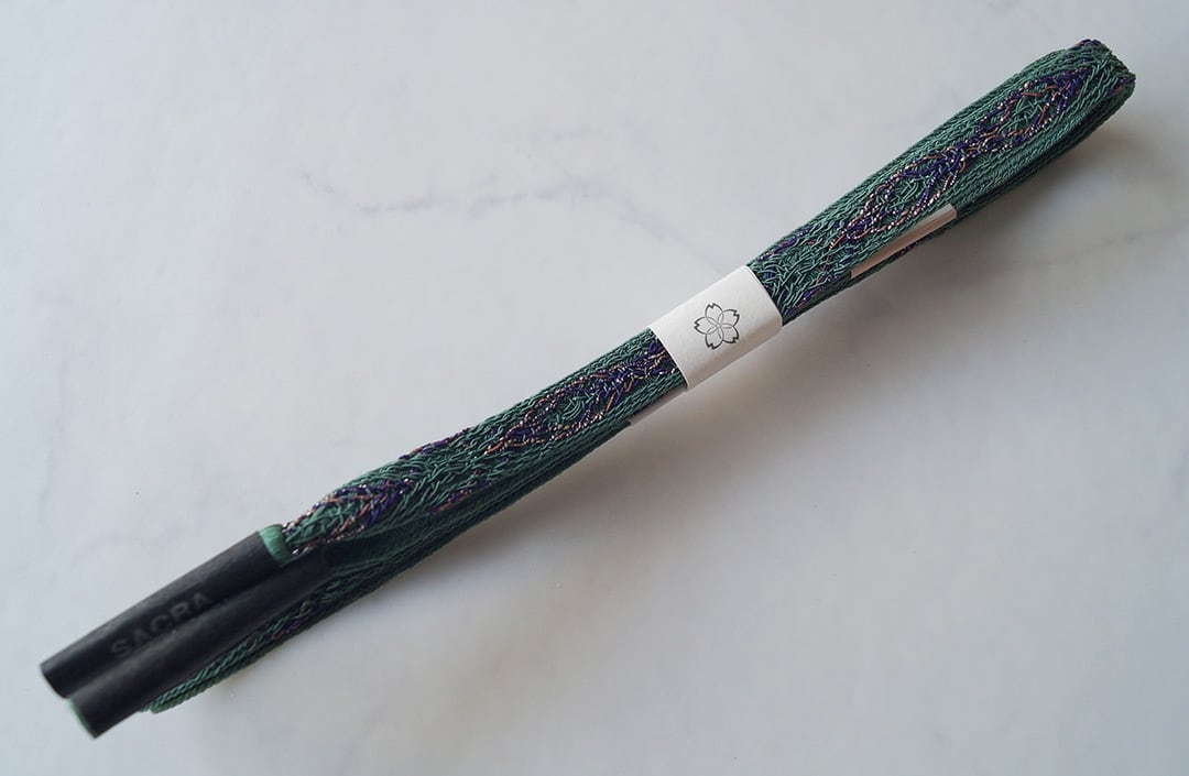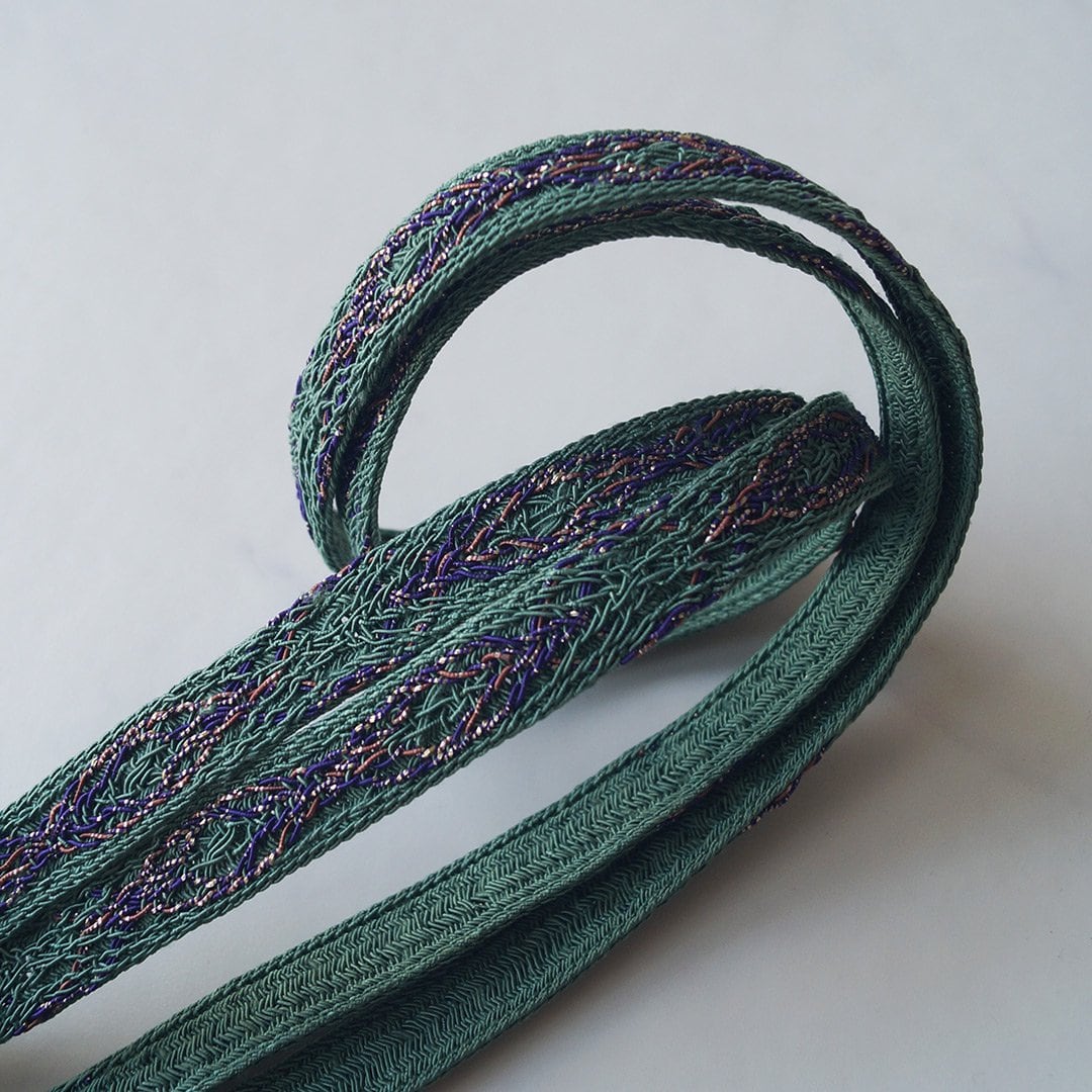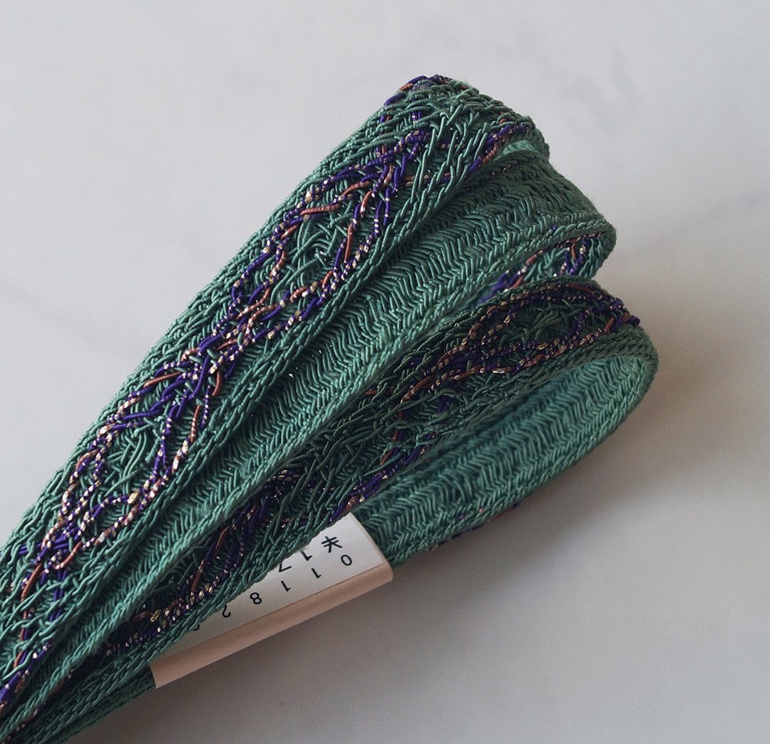 【和小物さくら・帯締め】常磐緑×桑の実色×纁 畝打組菱柄レース 夏用帯締め No.250624⑫
