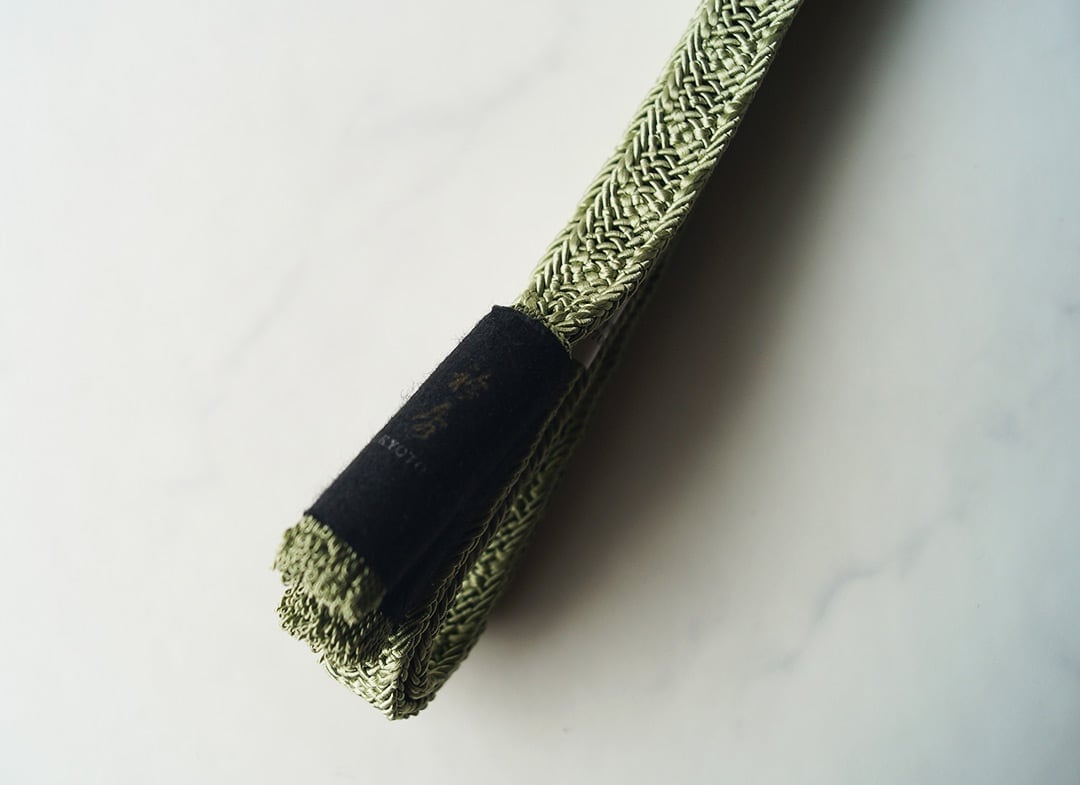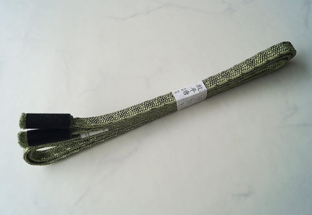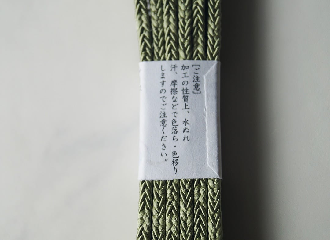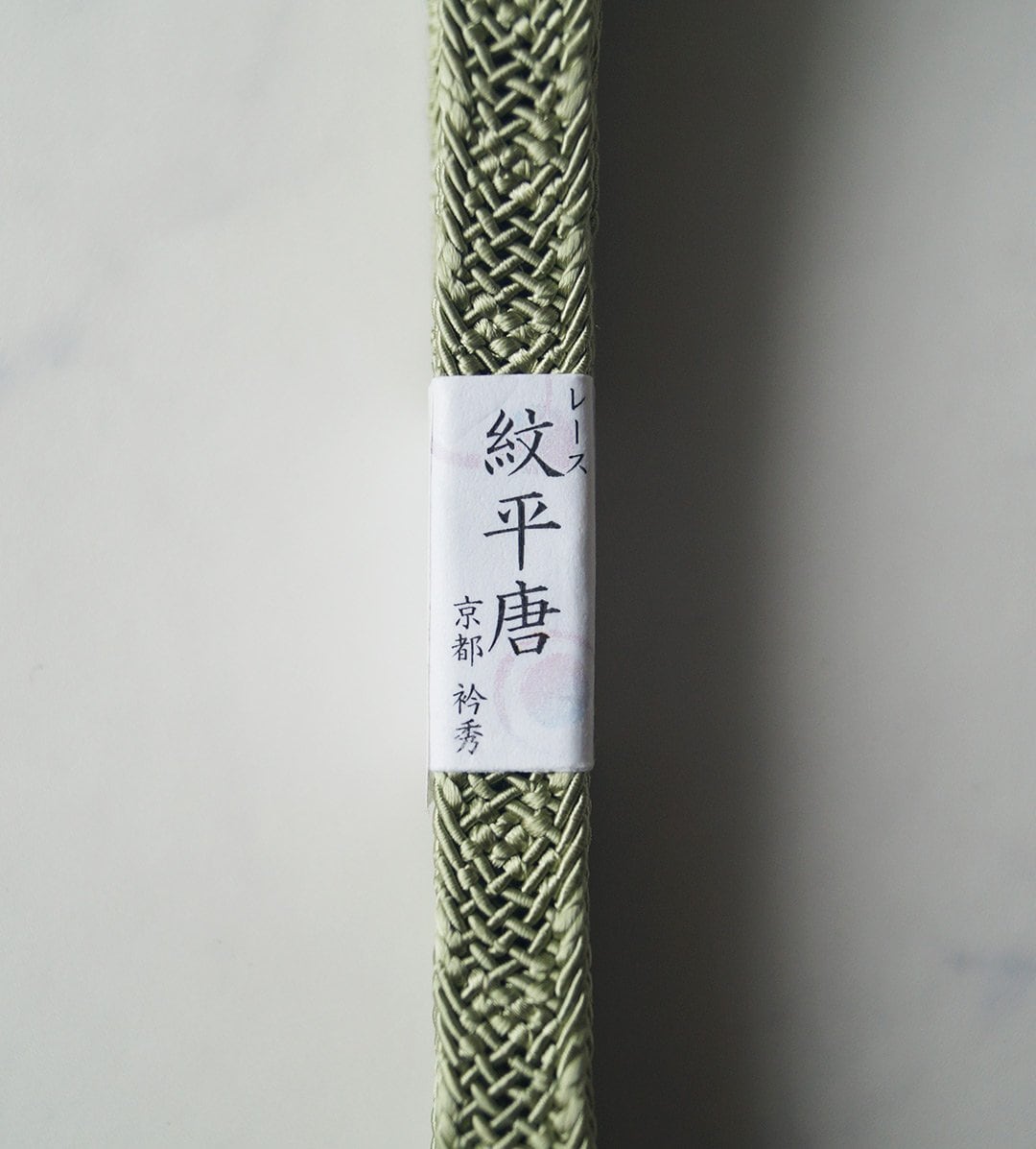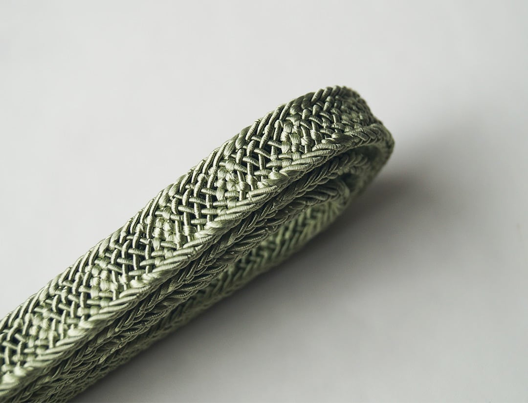 【衿秀・帯締め】レース紋平唐 柳染色 夏帯締め 撚り房 250704⑭