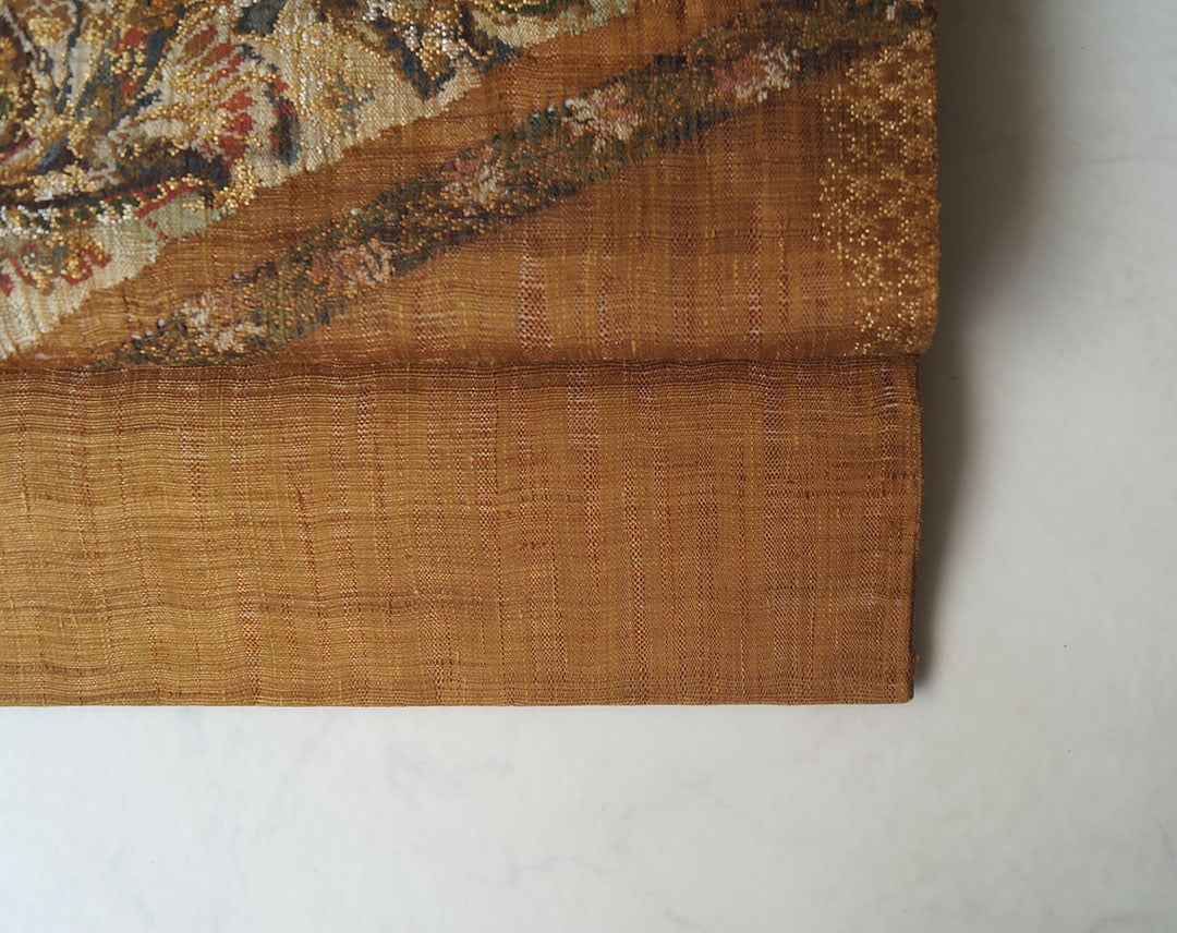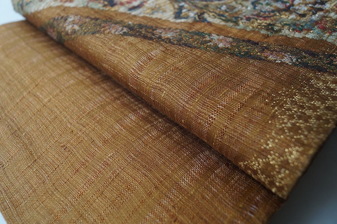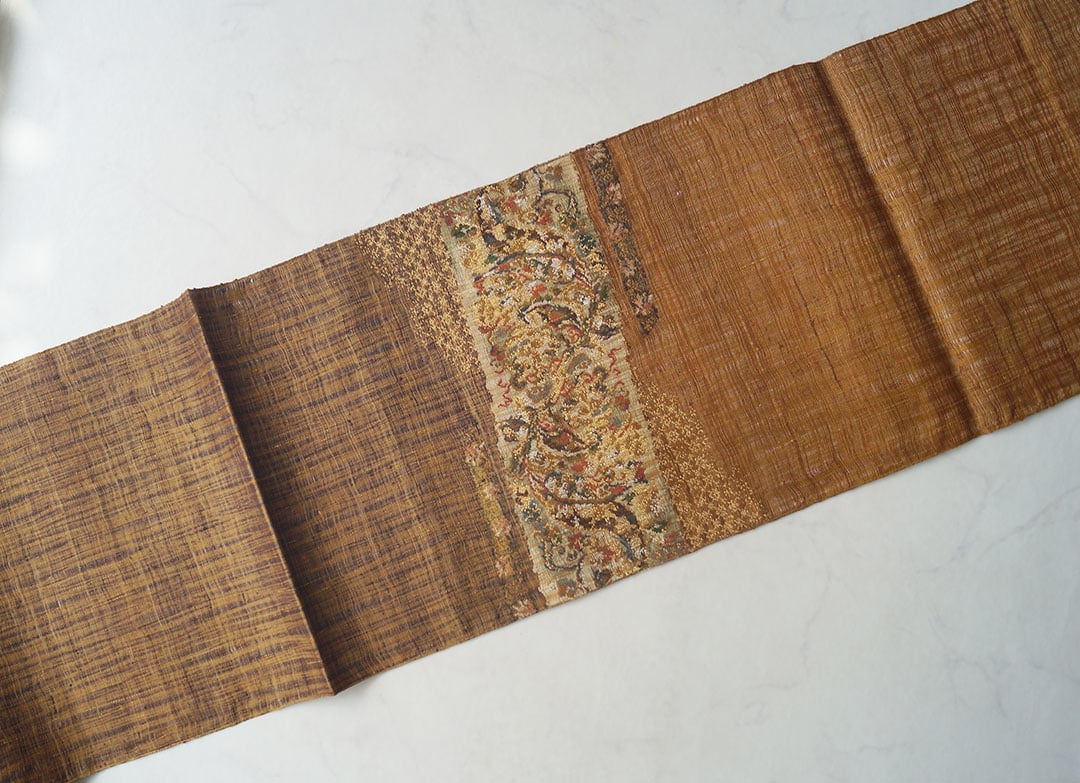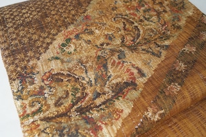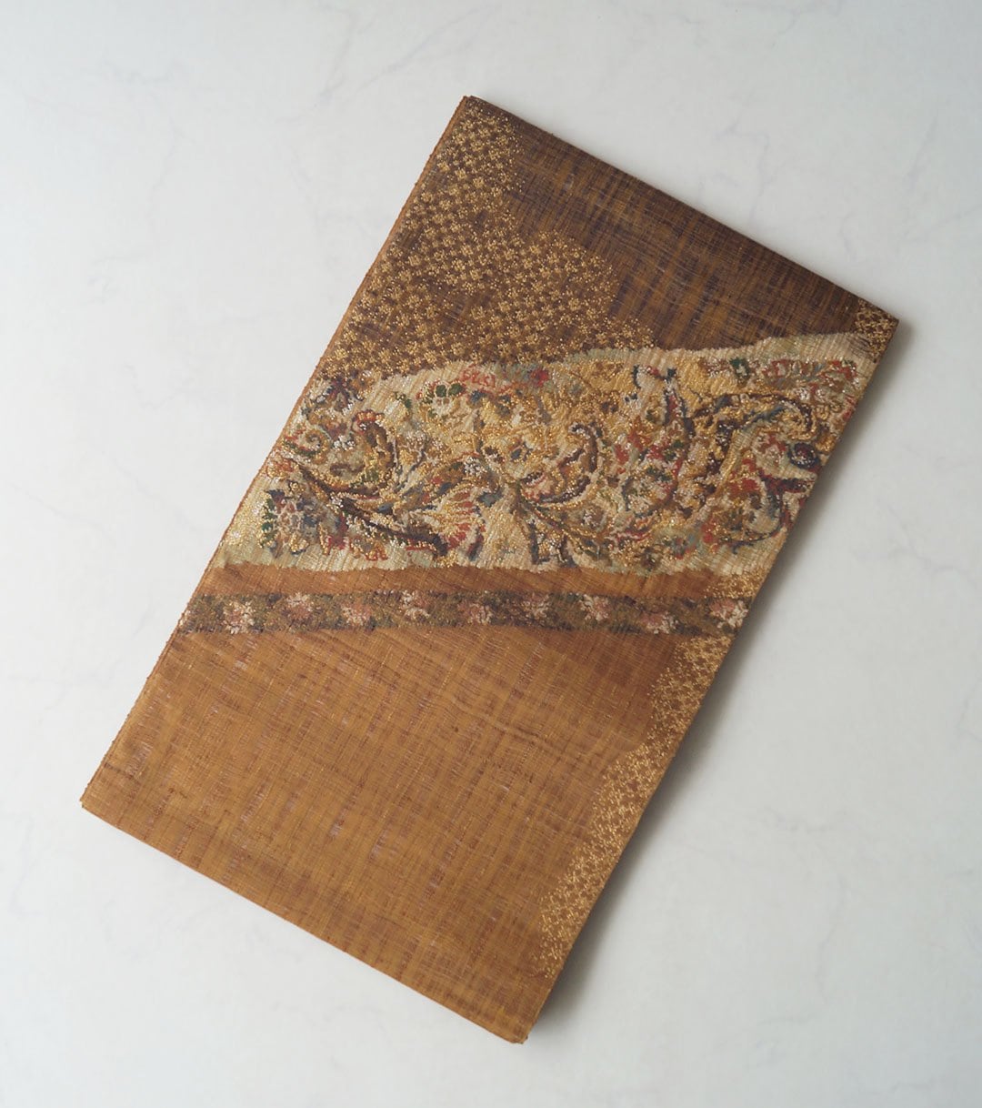 【夏・ふくろ帯】 渡文製 渋紙色 抽象花文 すくいふくろ帯