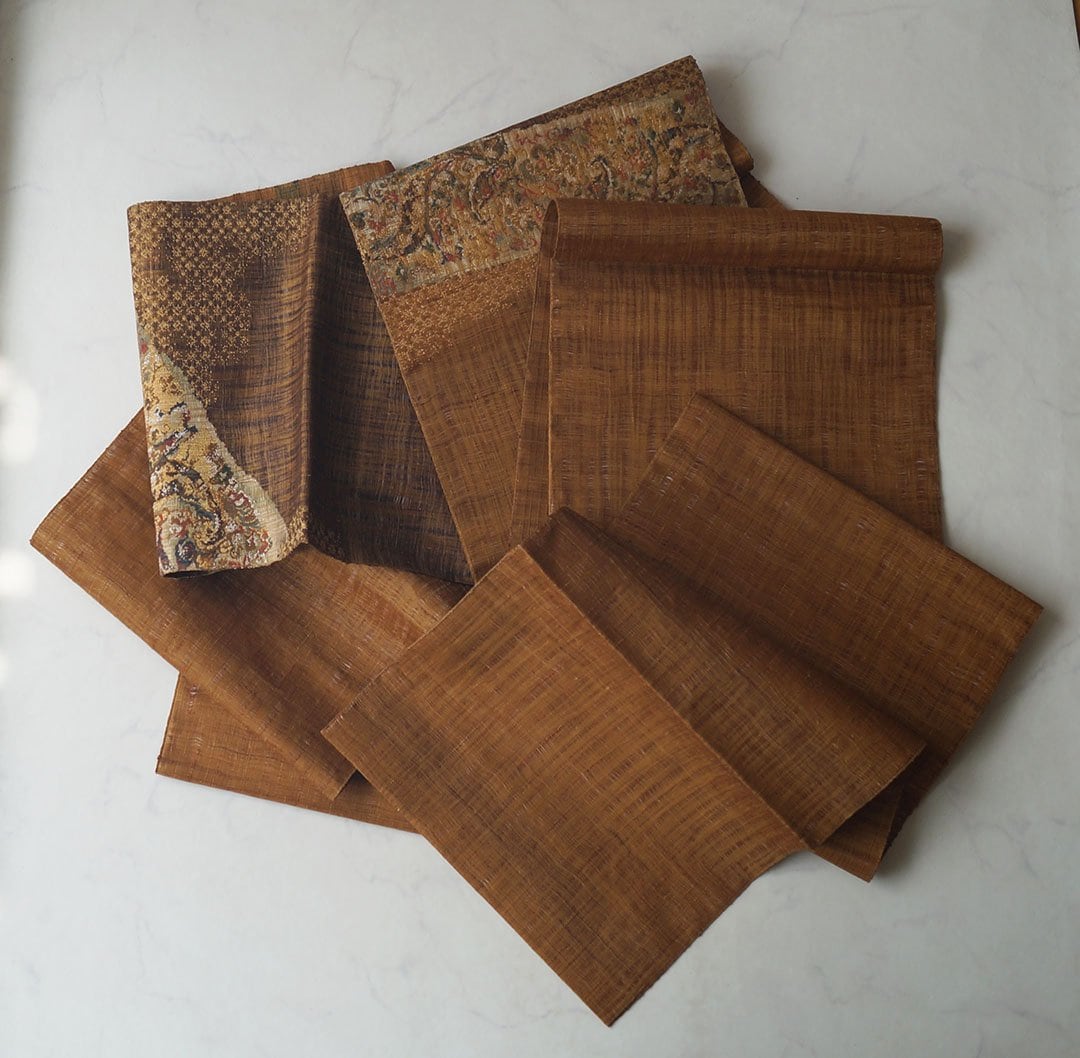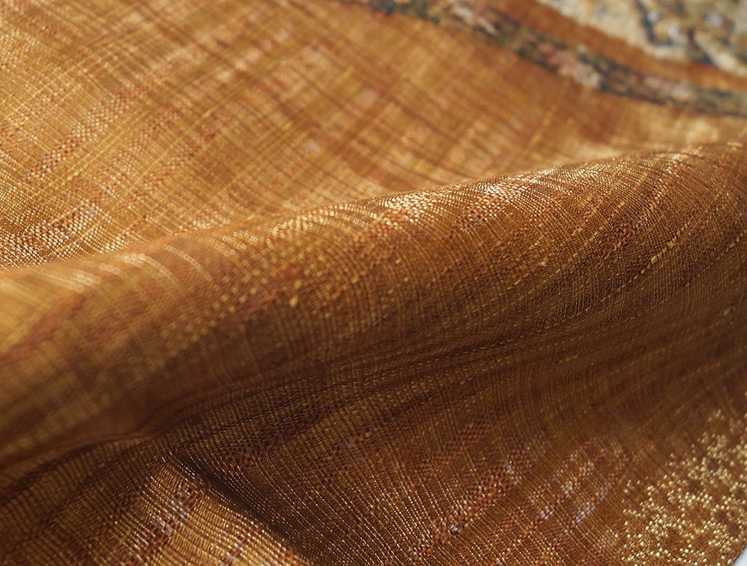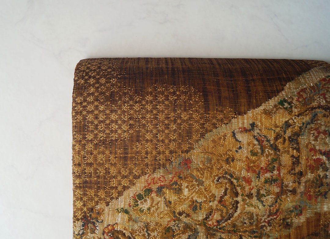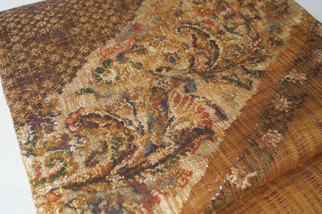【夏・ふくろ帯】 渡文製 渋紙色 抽象花文 すくいふくろ帯