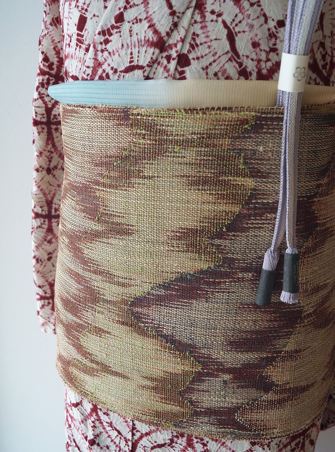 【夏なごや帯】飴色 垂れ柄 麻なごや帯