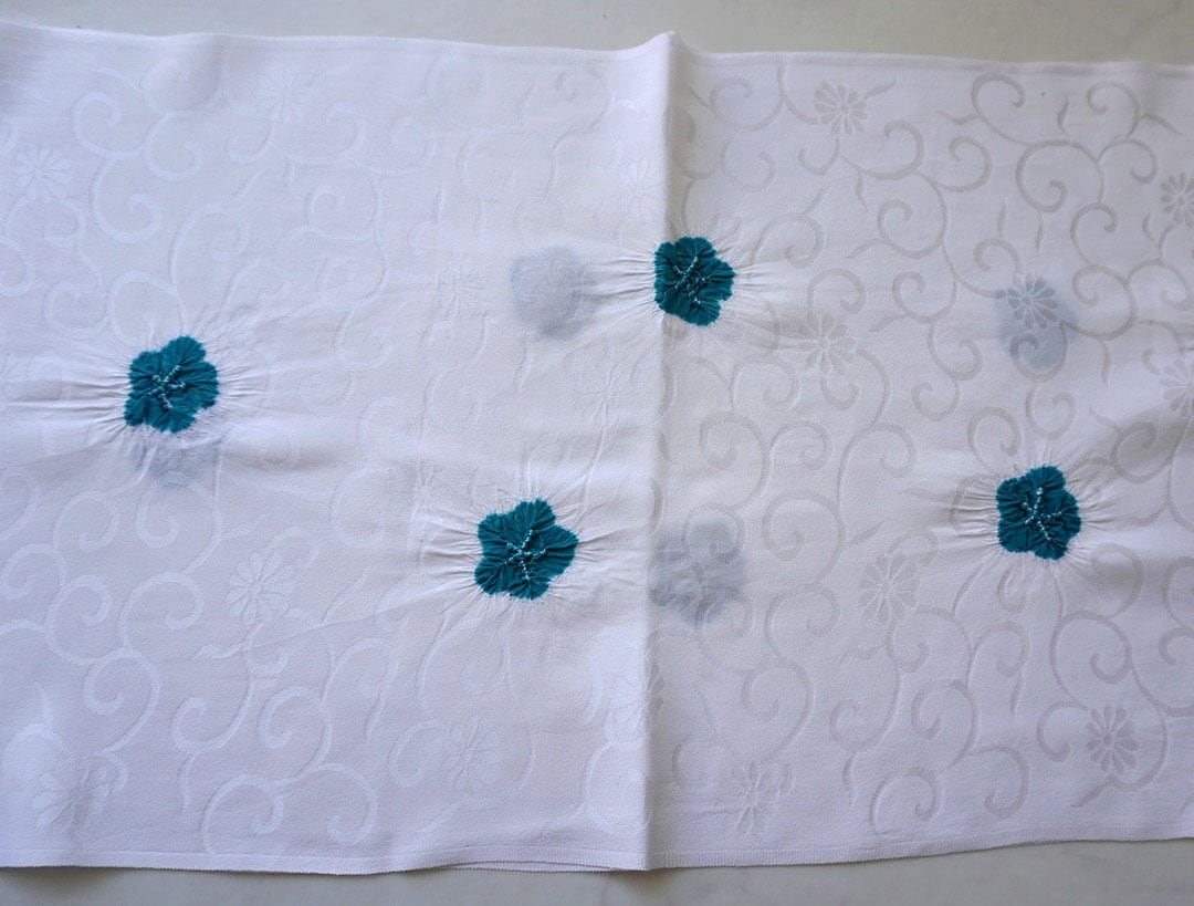 【衿秀・帯揚げ】白色×青緑 菊唐草綸子梅輪出し 帯揚げ №250325⑯