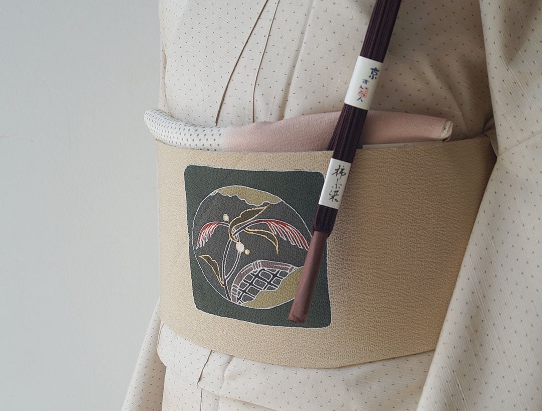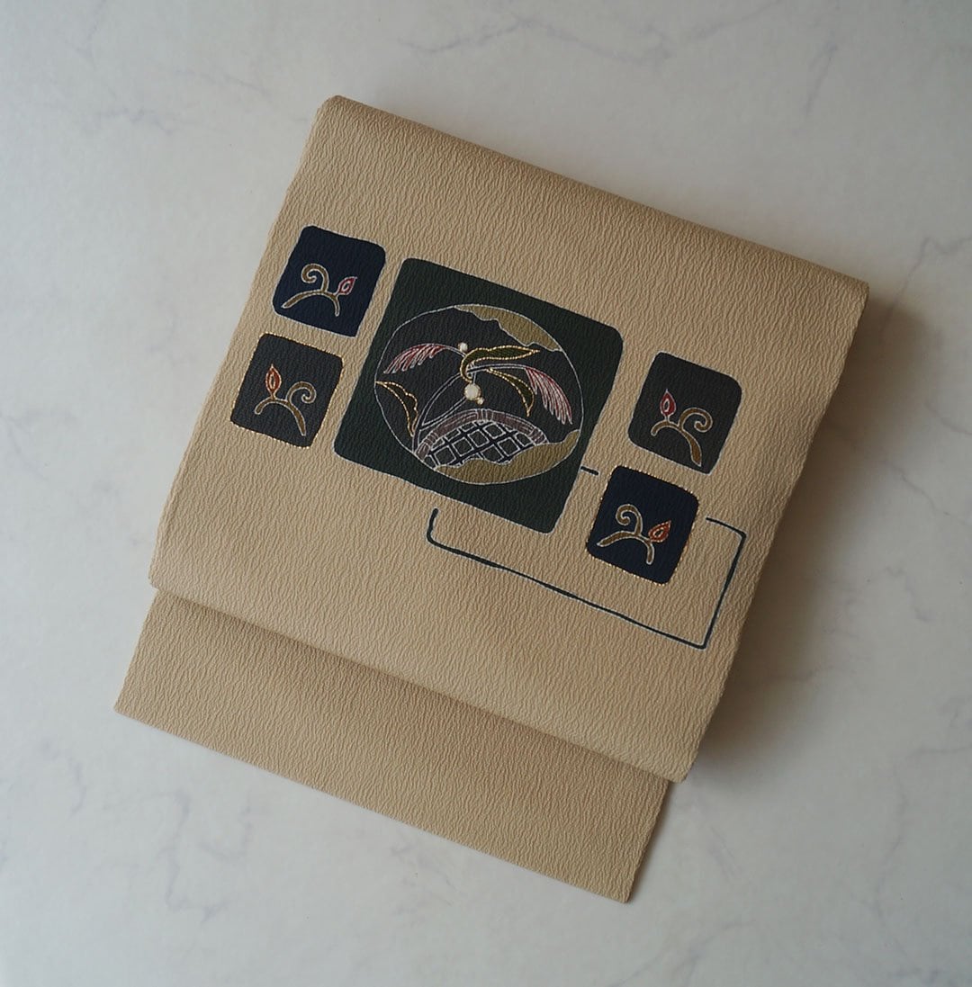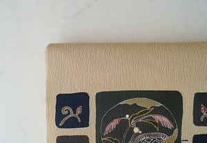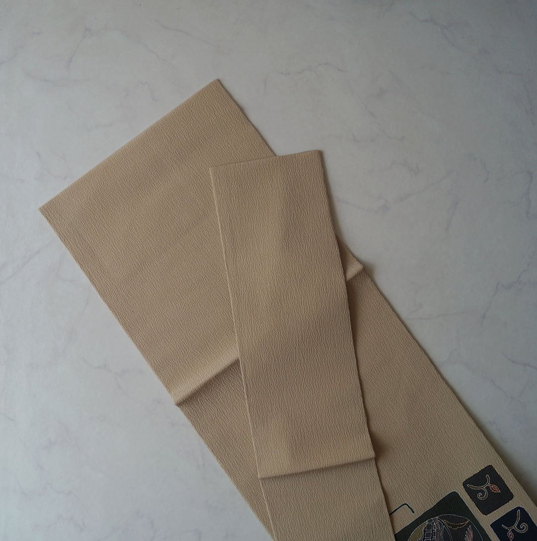 【なごや帯】白橡色 ざるにすすき文 なごや帯