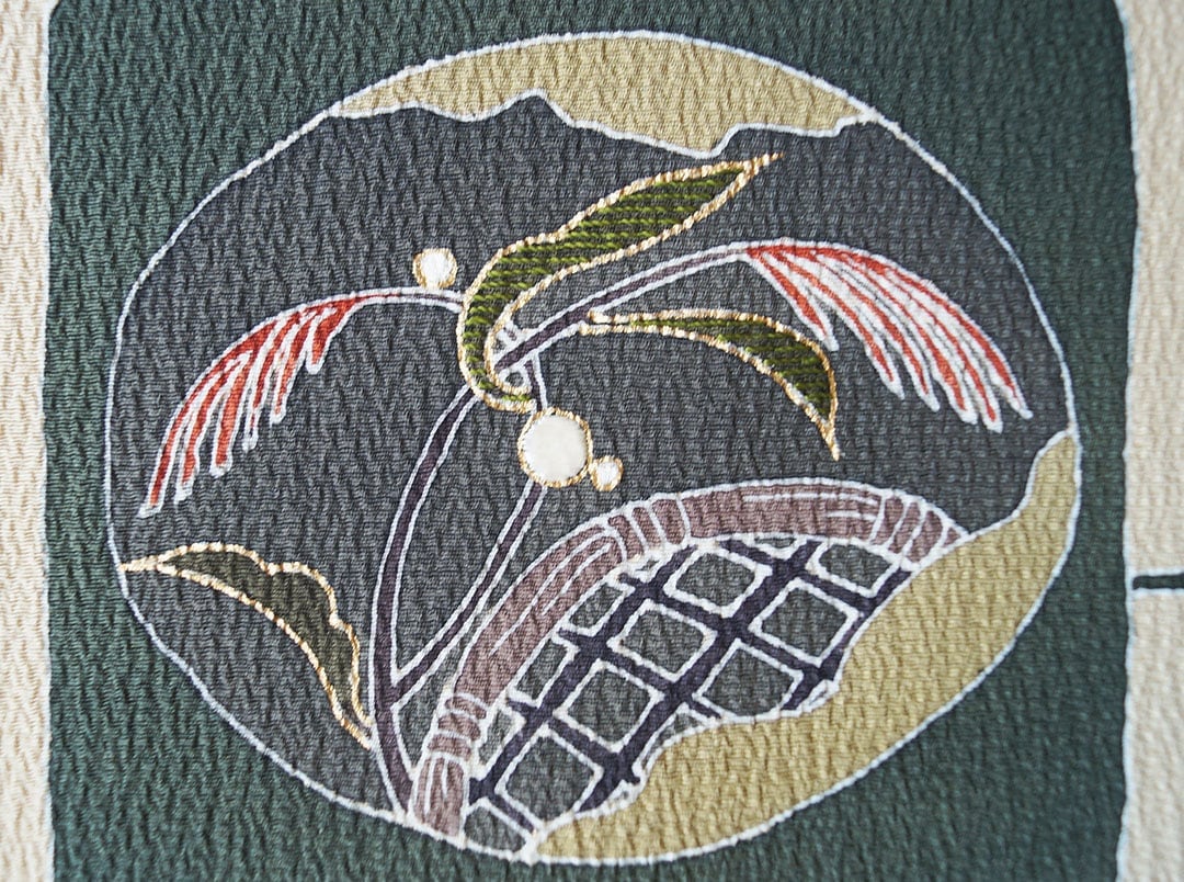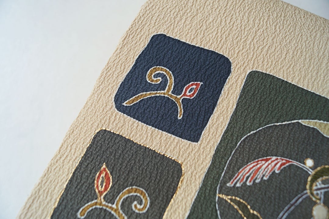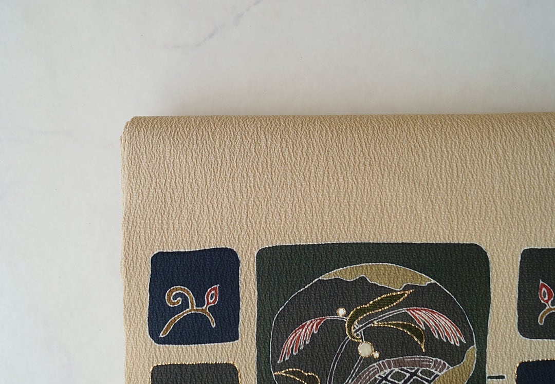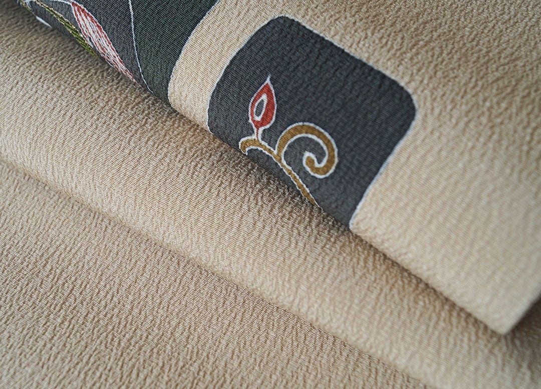 アースカラーの縮緬地に