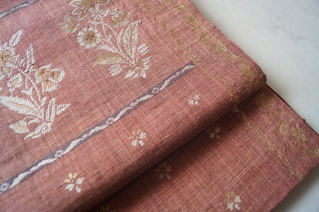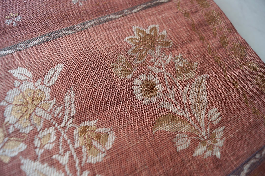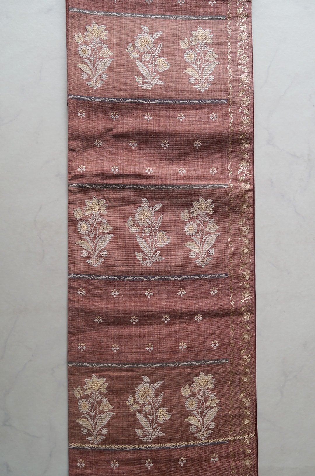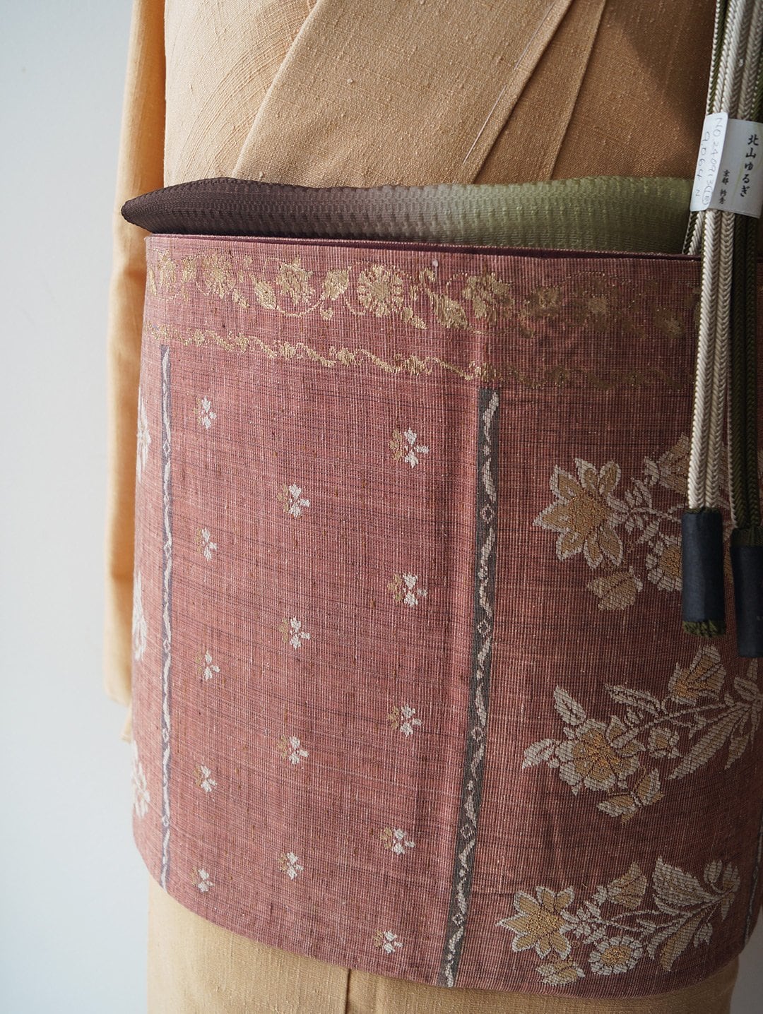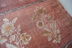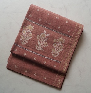 【ふくろ帯】銀朱色系 更紗文 ふくろ帯 リバーシブル