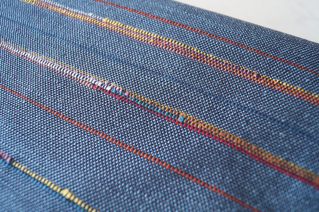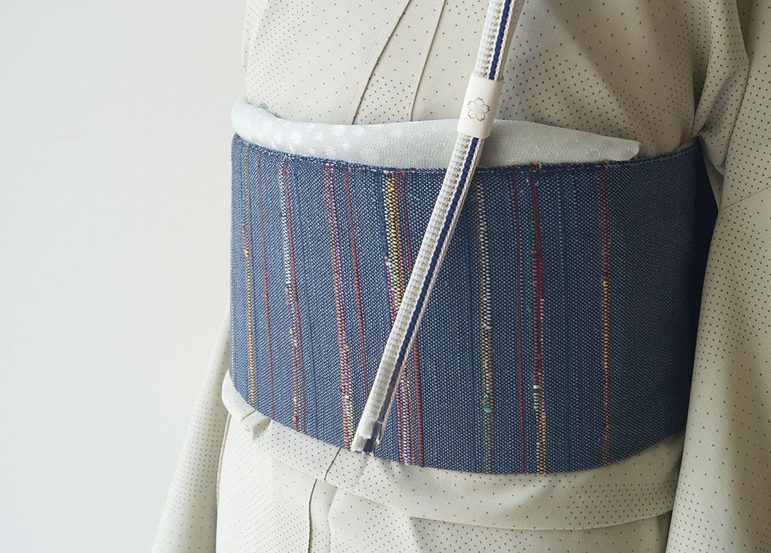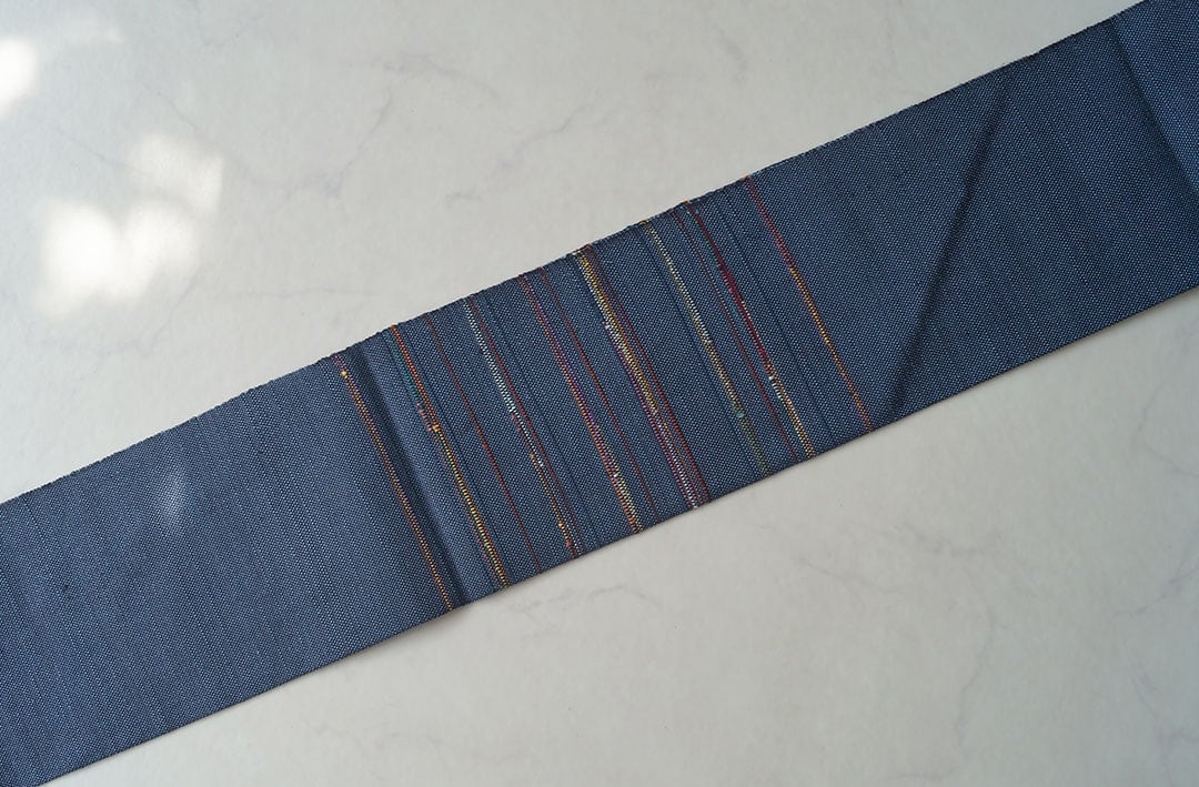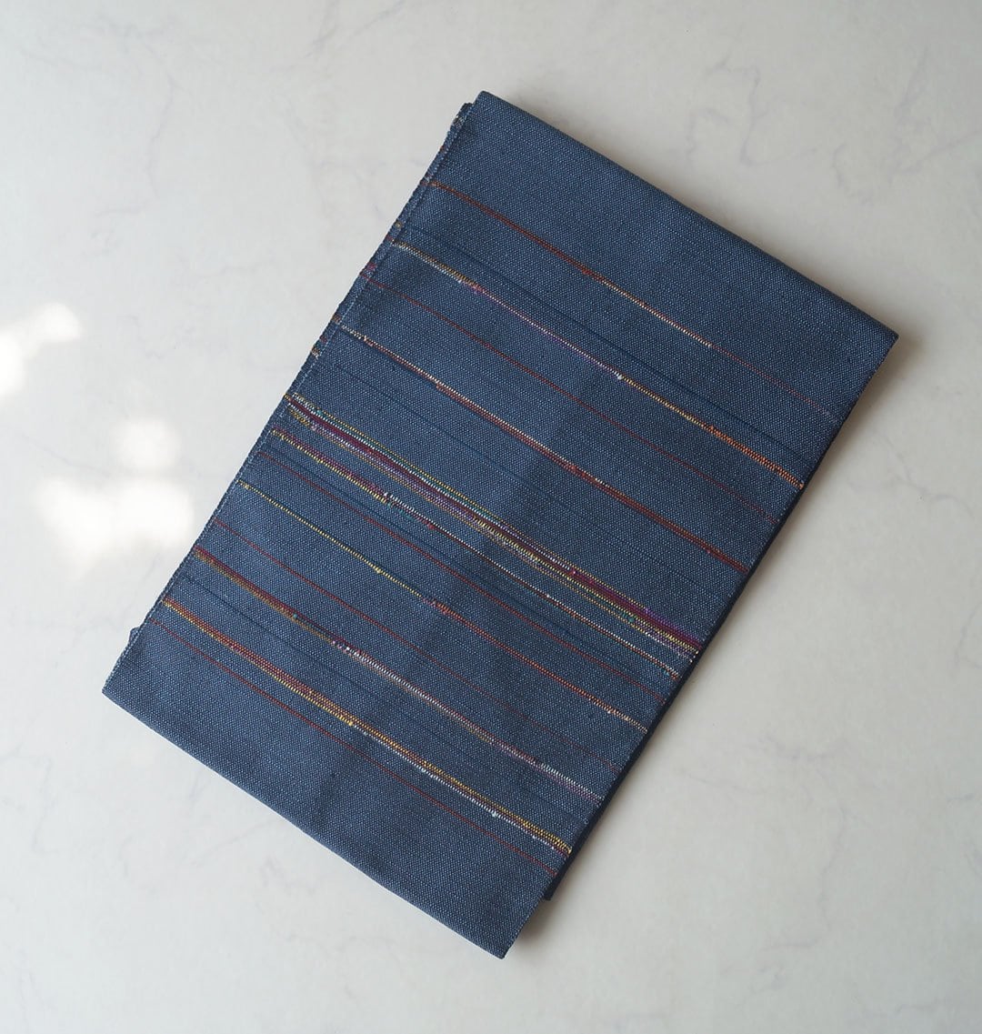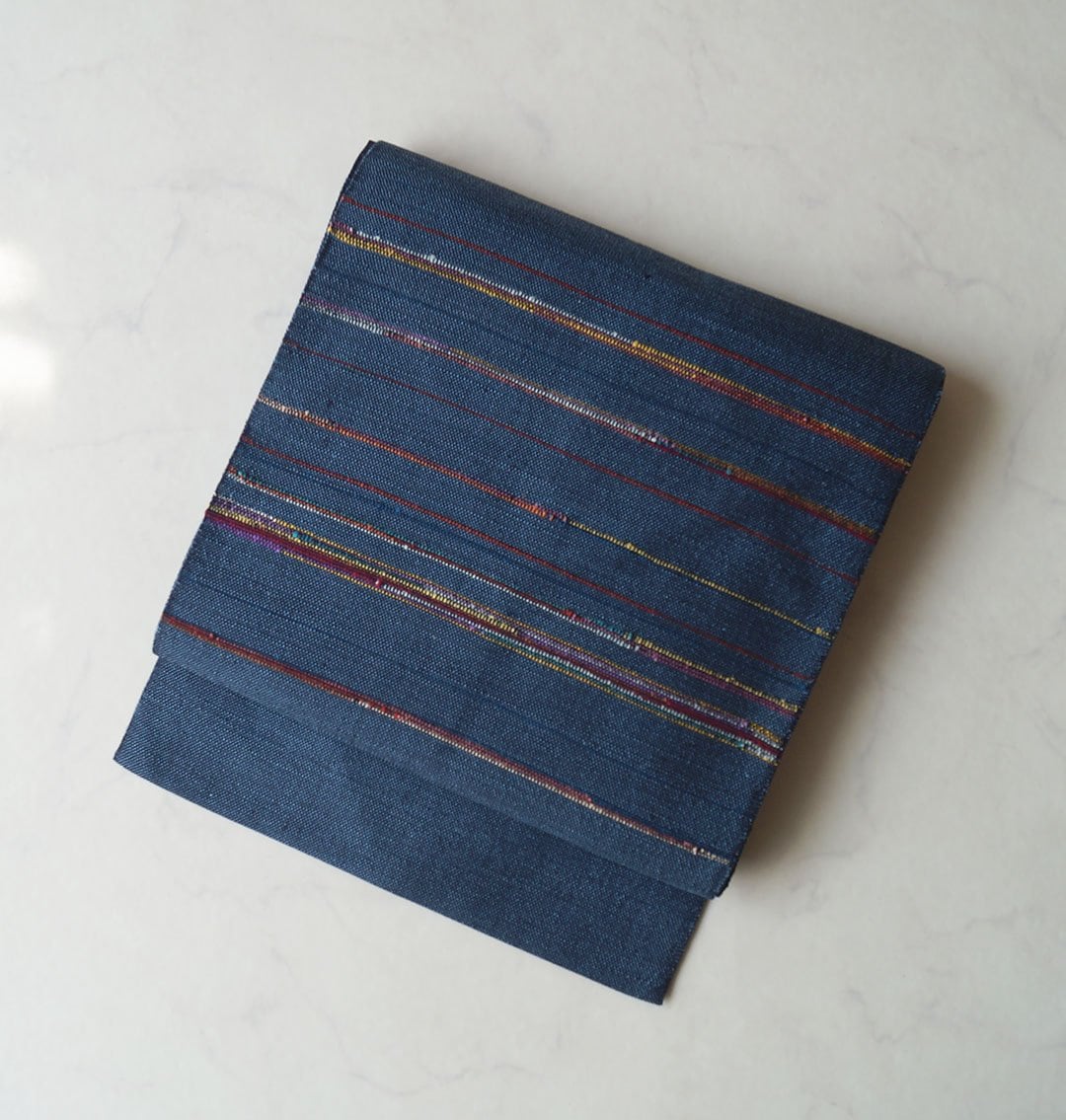 【なごや帯】紺色系 横縞文 八寸なごや帯