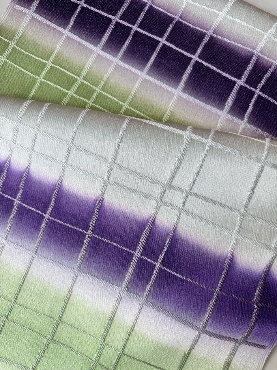 【和小物さくら・帯揚げ】蒲葡×黄緑 防染糸格子横段ぼかし帯揚げ No.240911⑮